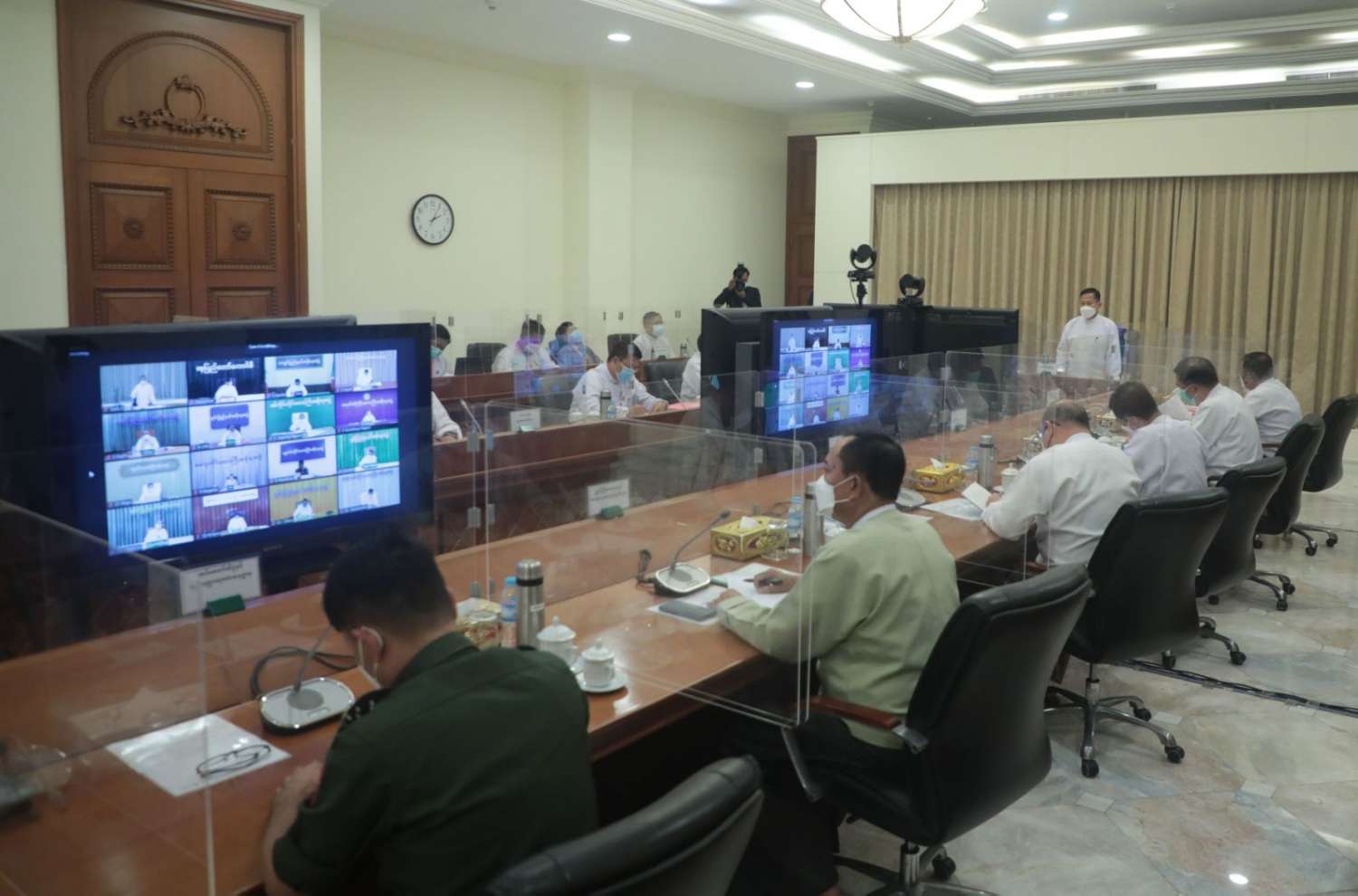 အစည်းအဝေးသို့ ပြည်ထောင်စုရွေးကောက်ပွဲကော်မရှင် ဥက္ကဋ္ဌ ဦးသိန်းစိုး၊ ပြည်ထောင်စုဝန်ကြီးများ ဖြစ်ကြသည့် ဒုတိယဗိုလ်ချုပ်ကြီး စိုးထွဋ်၊ ဦးခင်ရီနှင့် ဒေါက်တာမျိုးသိန်းကျော်၊ ပြည်ထောင်စုရွေးကောက်ပွဲ ကော်မရှင်အဖွဲ့ဝင် ဦးအောင်လွင်ဦး၊ ဒုတိယဝန်ကြီးများ ဖြစ်ကြသည့် ဦးဌေးလှိုင်၊ ဦးဇော်ဝင်းနှင့် ဦးအောင်ထွန်းခိုင်နှင့် တာဝန်ရှိသူများ တက်ရောက်ကြပြီး နေပြည်တော်ကောင်စီဥက္ကဋ္ဌ၊ တိုင်းဒေသကြီးနှင့် ပြည်နယ်ဝန်ကြီးချုပ်များနှင့် တာဝန်ရှိသူများက ဗီဒီယိုကွန့်ဖရင့်ဖြင့် တက်ရောက်ကြသည်။