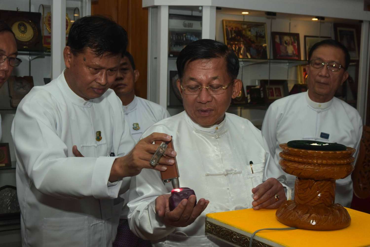 ယင်းနောက် နိုင်ငံတော်စီမံအုပ်ချုပ်ရေးကောင်စီဥက္ကဋ္ဌ နိုင်ငံတော်ဝန်ကြီးချုပ်နှင့် အခမ်းအနားတက်ရောက်လာကြသူများသည် ပတ္တမြားကြီးအား ကြည့်ရှုကြသည်။
