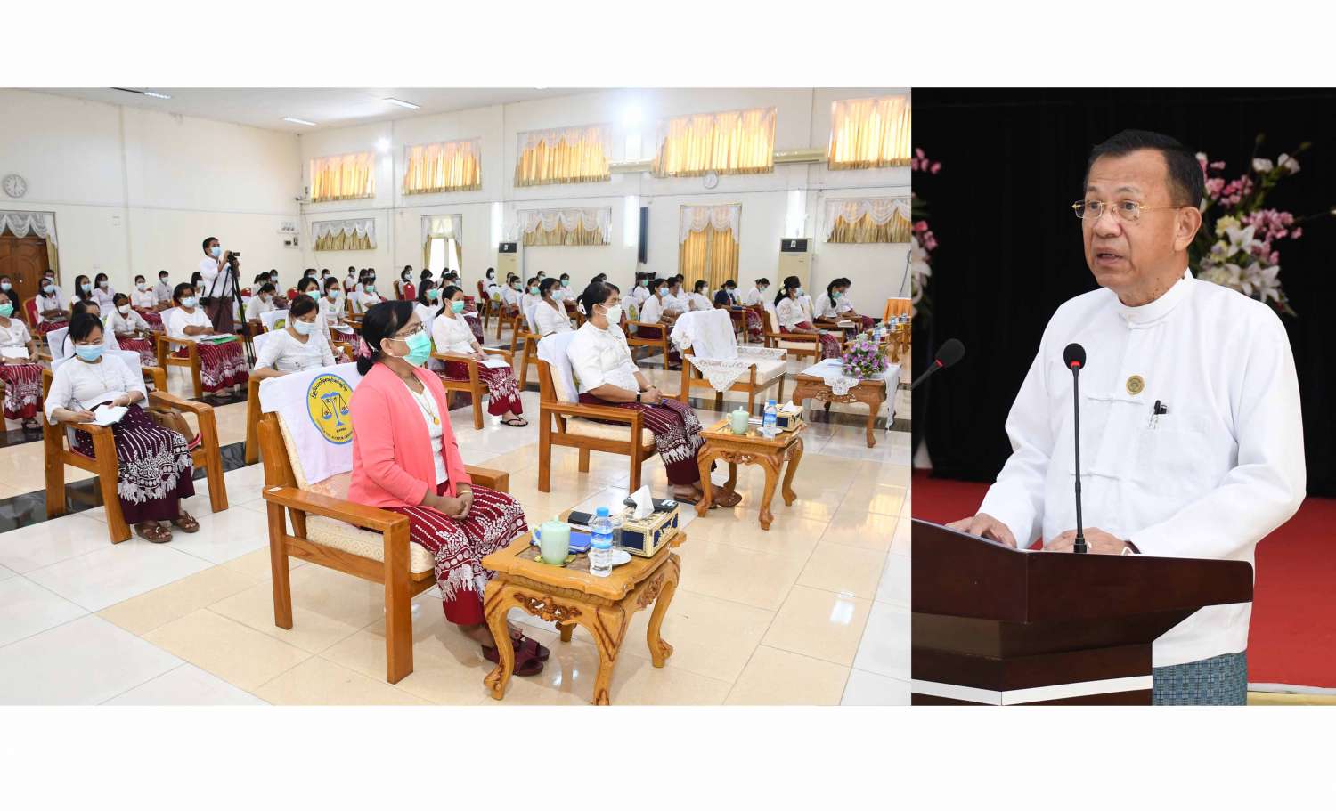 ပြည်ထောင်စုစာရင်းစစ်ချုပ်ရုံး နေပြည်တော်သင်တန်းကျောင်း၌ ဖွင့်လှစ်သည့် လက်ထောက်စာရင်းစစ်မှူးများ လုပ်ငန်းခွင်ဝင်ကျွမ်းကျင်မှု သင်တန်းအမှတ်စဉ် (၂/၂၀၂၂) သင်တန်းဆင်းအခမ်းအနားကို ယနေ့မွန်းလွဲပိုင်းတွင် ပြည်ထောင်စုစာရင်းစစ်ချုပ်ရုံး (နေပြည်တော်) စုပေါင်းခန်းမ၌ ကျင်းပသည်။