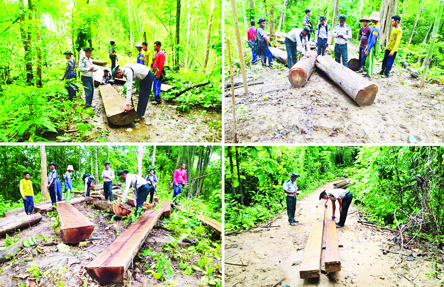 ထို့အတူ ပဲခူးတိုင်းဒေသကြီး တရားမဝင် ကုန်သွယ်မှုတိုက်ဖျက်ရေးအထူးအဖွဲ့၏ စီမံခန့်ခွဲမှု ဖြင့် တိုင်းဒေသကြီး သစ်တောဦးစီးဌာန ဦးဆောင် သော ပူးပေါင်းစစ်ဆေးရေးအဖွဲ့များက စစ်ဆေးမှုများ ဆောင်ရွက်ခဲ့ရာ တောင်ငူခရိုင်ရှိ ကျောက်မဆင်ကြိုးဝိုင်းနှင့် ခပေါင်းကြိုးဝိုင်းအတွင်း တရားမဝင် ကျွန်းသစ်နှင့် ဒီးဒူးခွဲသား (၁၃ ဒသမ ၈၆၂) တန် (ခန့်မှန်း တန်ဖိုးငွေကျပ် ၄၃၇၁၁၂၆)ကို ဖမ်းဆီးရမိ ခဲ့ပြီး သစ်တောဥပဒေနှင့်အညီ အရေးယူဆောင်ရွက်လျက်ရှိသည်။