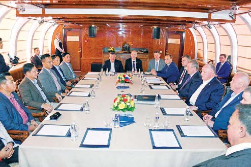 နိုင်ငံတော်စီမံအုပ်ချုပ်ရေးကောင်စီဥက္ကဋ္ဌ နိုင်ငံတော်ဝန်ကြီးချုပ်နှင့် အဖွဲ့ဝင်များသည် ဇူလိုင် ၁၁ ရက်တွင် ရုရှား-အာဆီယံ စီးပွားရေးကောင်စီဥက္ကဋ္ဌ Mr. Ivan Polyakov (အီဗန် ပါလျာကော့) ဦးဆောင်သည့် ကိုယ်စားလှယ်အဖွဲ့အား ခေတ္တတည်းခိုနေထိုင်သည့် Metropol ဟိုတယ်ဧည့်ခန်းမ၌တွေ့ဆုံ၍ စိုက်ပျိုးရေးကို အခြေခံသည့် ထုတ်ကုန်များ တင်ပို့နိုင်ရေးနှင့် ဆီထွက်သီးနှံစိုက်ပျိုးထုတ်လုပ်မှုအတွက် နည်းပညာလိုအပ်ချက်များကို ပူးပေါင်းဆောင်ရွက်နိုင်မည့် အခြေအနေများ၊ လျှပ်စစ်ဓာတ်အား ထုတ်လုပ်မှုနှင့် နှစ်နိုင်ငံ ပို့ကုန်၊ သွင်းကုန်ကဏ္ဍ အဆင့်မြှင့်တင်ဆောင်ရွက်နိုင်မည့် အခြေအနေများကိုလည်းကောင်း။