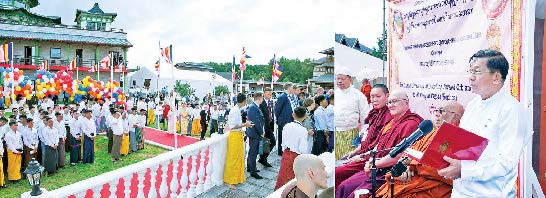 ၎င်းနောက် နိုင်ငံတော်စီမံအုပ်ချုပ်ရေးကောင်စီဥက္ကဋ္ဌ၊ နိုင်ငံတော်ဝန်ကြီးချုပ် နှင့်ဇနီးနှင့် အဖွဲ့ဝင်များသည် ဆရာတော်၊ သံဃာတော်များအား နေ့ဆွမ်းဆက်ကပ် လှူဒါန်းကြပြီး အခမ်းအနားတက်ရောက်လာကြသူများအား နေ့လယ်စာဖြင့် တည်ခင်းဧည့်ခံခဲ့သည်။ နေ့လည်စာသုံးဆောင်အပြီးတွင် နိုင်ငံတော်စီမံအုပ်ချုပ်ရေးကောင်စီဥက္ကဋ္ဌ နိုင်ငံတော်ဝန်ကြီးချုပ်နှင့် အခမ်းအနားတက်ရောက်လာကြသည့် ဧည့်သည်တော်ကြီးများသည် အမှတ်တရလက်ဆောင်ပစ္စည်းများ အပြန်အလှန်ပေးအပ်ခဲ့ကြသည်။