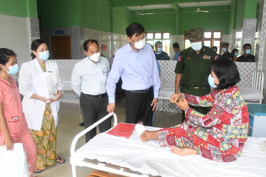 ဆက်လက်ပြီး ပြည်ထောင်စုဝန်ကြီးနှင့် တာဝန်ရှိသူများသည် ခန္တီးမြို့ ပြည်သူ့ဆေးရုံကြီးတွင် ဆေးကုသမှုခံယူနေကြသော ဒေသခံပြည်သူများကို ရင်းရင်းနှီးနှီး နှုတ်ဆက်အားပေးပြီး ထေရဝါဒဗုဒ္ဓသာသနာပြု(ဗဟို)ကျောင်းတိုက်သို့ သွားရောက်ကာ ဆရာတော်ကြီးများအား ဖူးမျှော်ကြည်ညို၍ ဝတ္ထုငွေနှင့် လှူဖွယ်ပစ္စည်းများအား ဆက်ကပ်လှူဒါန်းခဲ့ကြောင်း သိရသည်။
