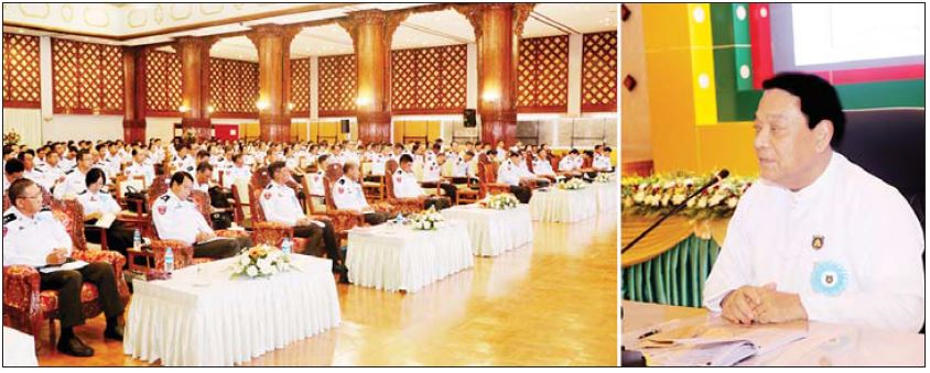 ယင်းနောက် ပြည်ထောင်စုဝန်ကြီးက နိုင်ငံတော်အစိုးရ၏နိုင်ငံတော်စီမံချက်တစ်ခုဖြစ်သည့် ပန်းခင်းစီမံချက်၏ အရေးကြီးမှုနှင့် မဲစာရင်းမှန်ကန်ရေးအတွက် အထွေထွေရွေးကောက်ပွဲကော်မရှင်နှင့် ပေါင်းစပ်ညှိနှိုင်းဆောင်ရွက်ရမည့် အခြေအနေ၊ နိုင်ငံသားတိုင်းကိုင်ဆောင်ကတ်ပြား တစ်မျိုးမျိုး မဖြစ်မနေ ရရှိကိုင်ဆောင်နိုင်ရေးအတွက် ပန်းခင်းစီမံချက်အဆင့်(၂)ကိုဆက်လက်ဆောင်ရွက် သွားမည့်အစီအစဉ်နှင့် e-ID စနစ်အကောင်အထည် ဖော်နိုင်ရေးအတွက် လုပ်ငန်းများကြိုတင်ဆောင်ရွက် နေမှု၊မိမိတို့ဌာနလုပ်ငန်းများအား နည်းပညာများ အသုံးပြု၍ ဒစ်ဂျစ်တယ်စနစ်သို့ ကူးပြောင်းနိုင်ရေး စီစဉ်ဆောင်ရွက်နေမှု၊ ဝန်ထမ်းများအနေဖြင့် နိုင်ငံနှင့်ဌာနအပေါ် သစ္စာစောင့်သိကြရေး၊ ဌာနလုပ်ထုံးလုပ်နည်းများ ကျွမ်းကျင်ပိုင်နိုင်ရေး၊ IT နည်းပညာနှင့် ဘာသာစကား တတ်ကျွမ်းရေးနှင့် ပြည်သူအပေါ် ယဉ်ကျေးပျူငှာစွာ ဆက်ဆံဆောင်ရွက်ရေးတို့ကို အလေးထားကျင့်ကြံဆောင်ရွက်ကြရေး၊ စည်းလုံးညီညွတ်စွာဖြင့် ပေးအပ်သည့်တာဝန်များကို ကျေပွန်စွာ ထမ်းဆောင်နိုင်ရေးတို့နှင့်စပ်လျဉ်း၍ ရှင်းလင်းပြောကြားခဲ့ကြောင်း သိရသည်။