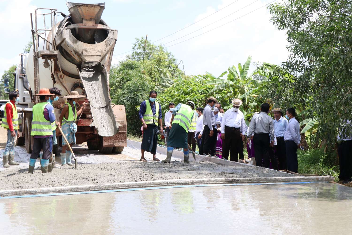 ဆက်လက်၍ ပြည်ထောင်စုဝန်ကြီးနှင့်အဖွဲ့သည် ရန်ကုန်တိုင်းဒေသကြီး၊ တိုက်ကြီးမြို့နယ် ကျေးလက်လမ်း ဖွံ့ဖြိုးရေးဦးစီးဌာနက ၂၀၂၀-၂၀၂၁ ခုဘဏ္ဍာရေးနှစ်တွင် ခွင့်ပြုရန်ပုံငွေကျပ် ၈၉၇ ဒသမ ၃၂ သန်းဖြင့် အကောင်အထည်ဖော် ဆောင်ရွက်ခဲ့သော ကျေးရွာပေါင်း ခုနစ်ရွာမှ လူဦးရေ ၂၅၀၀ ဖြတ်သန်းသွားလာ အသုံးပြုလျက်ရှိသည့် တာခွ - ဂုံညှင်းတန်း - ရှောက်ပင်ကပ် - ကုလားစု - ဗမာစု ကျေးရွာချင်းဆက် ကွန်ကရစ်လမ်း ခင်းခြင်းလုပ်ငန်း ဆောင်ရွက်ထားရှိမှုကို ကြည့်ရှုစစ်ဆေးပြီး လိုအပ်သည်များ မှာကြားသည်။