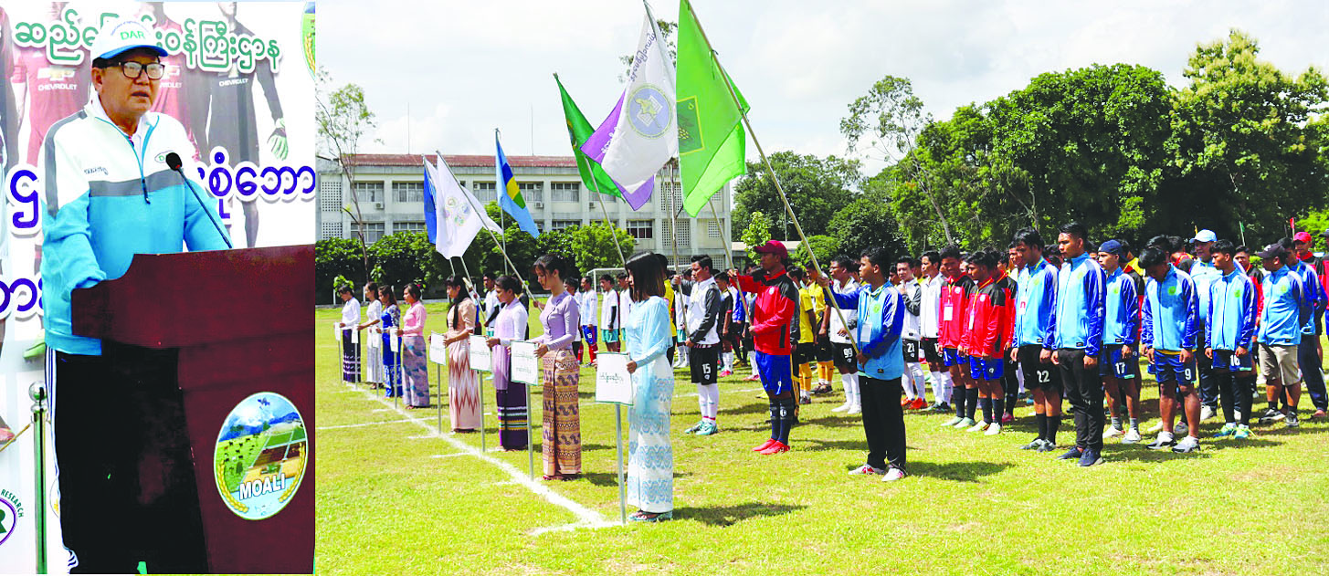 စိုက်ပျိုးရေး၊ မွေးမြူရေးနှင့် ဆည်မြောင်းဝန်ကြီးဌာန ၂၀၂၂ ခုနှစ် မိုးရာသီဌာနပေါင်းစုံ ဘောလုံးအားကစားပြိုင်ပွဲ ဖွင့်ပွဲအခမ်းအနားကို ဇူလိုင် ၂၀ ရက်က စိုက်ပျိုးရေး သုတေသနဦးစီးဌာန ဘောလုံးအားကစားကွင်း၌ ကျင်းပသည်။