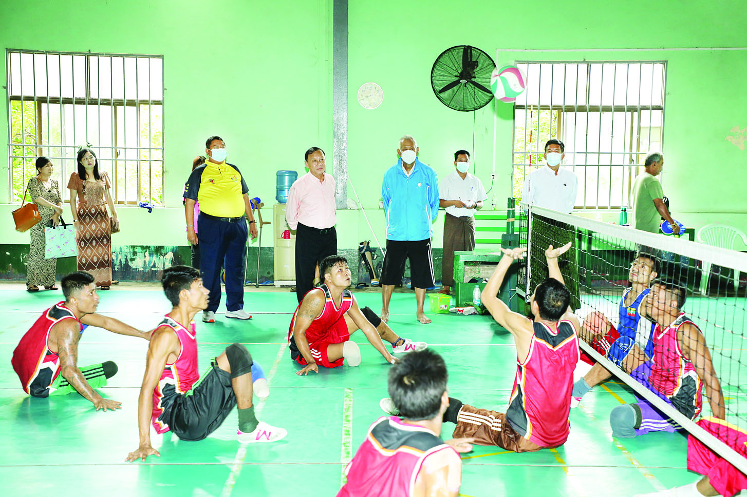 ဆက်လက်၍ ဒဂုံမြို့သစ်မြောက်ပိုင်းရှိ မြန်မာနိုင်ငံမသန်စွမ်းအားကစားအဖွဲ့ချုပ်၌ (၁၁)ကြိမ်မြောက် အာဆီယံမသန်စွမ်းသူများ အားကစားပြိုင်ပွဲသို့ ဝင်ရောက်ယှဉ်ပြိုင်မည့်အား ကစားသမားများ နံနက်စာစားသုံးနေမှုကို ကြည့်ရှုပြီး ပြေးခုန်ပစ်အားကစားသမားများ၊ မျက်မမြင်ဂိုးဘော အားကစားသမားများ၏ လိုအပ်ချက်များကို ဖြည့်ဆည်းပေးသည်။