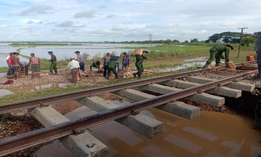 ပဲခူးတိုင်းဒေသကြီး၊ ပြည်ခရိုင်၊ သဲကုန်းမြို့နယ်အတွင်း ဇူလိုင် ၂၃ ရက် ညနေပိုင်းတွင် မိုးသည်ထန်စွာရွာသွန်းမှုကြောင့် ရန်ကုန်-ပြည် မီးရထားလမ်း မိုင်တိုင် (၁၄၁/၁၅)နှင့် (၁၄၃) ကြား၌ ရေတိုက်စားကာ ရထားလမ်း မြေပြိုပျက်စီးမှုများ ဖြစ်ပေါ်ခဲ့သည်။