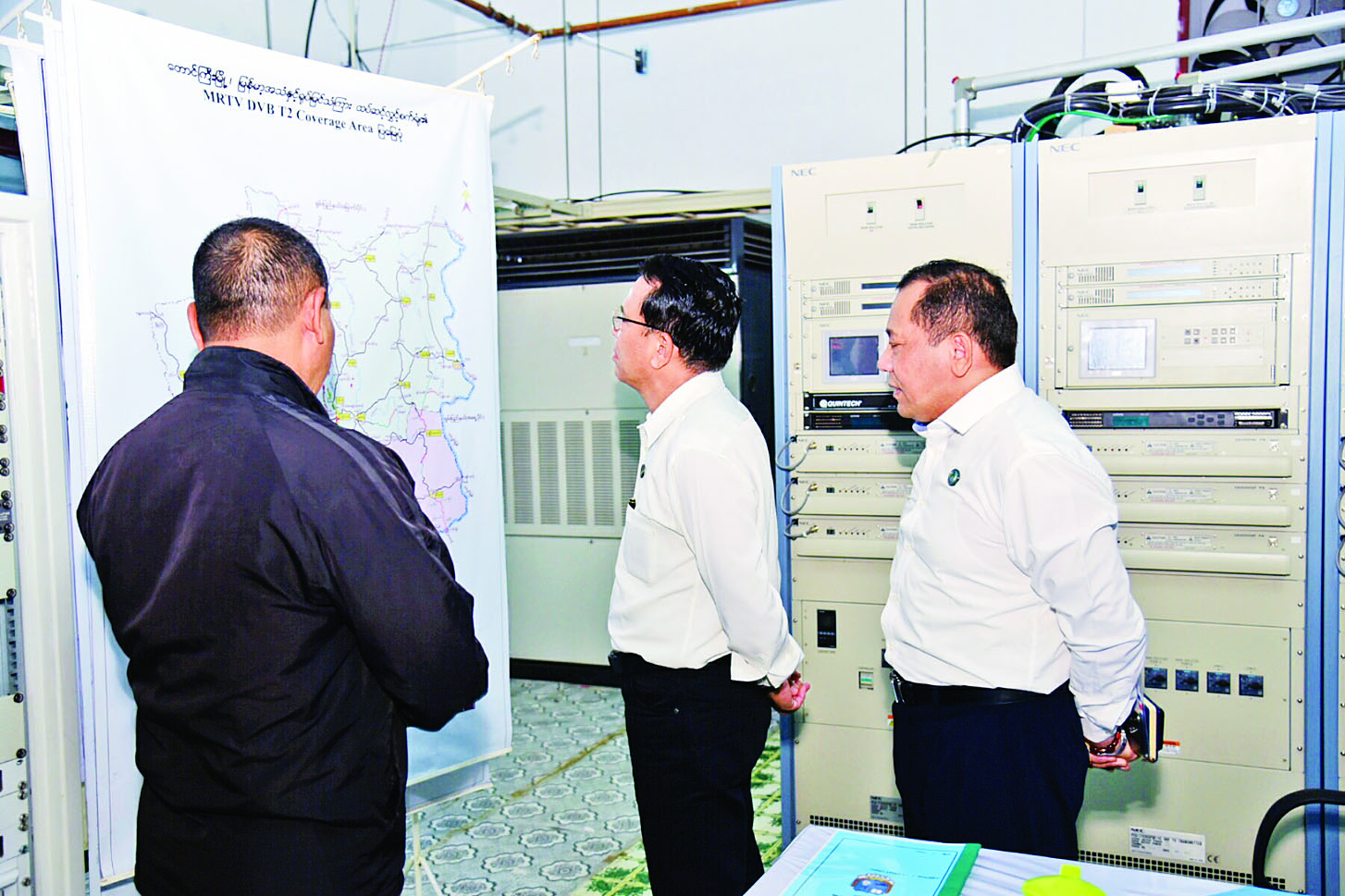 ရှေးဦးစွာ တောင်ကြီးမြို့ရှိ ထပ်ဆင့်လွှင့်စက်ရုံ၌ MRTV တောင်ကြီးဇုန်နယ်မှူးနှင့် တောင်ကြီးထပ်ဆင့်လွှင့်စက်ရုံမှူးတို့က စက်ရုံနှင့်တာဝါတိုင်များ ကြံ့ခိုင်မှု၊ စက်ပစ္စည်းများ တပ်ဆင်ထားရှိမှုနှင့် လုပ်ငန်းဆောင်ရွက်နေမှုကို ရှင်းလင်းတင်ပြကြရာ ပြည်ထောင်စုဝန်ကြီးက စက်ပစ္စည်းများ ရေရှည်အသုံးပြုနိုင်ရန်အတွက် သတ်မှတ်ချက်နှင့်အညီ ကြံ့ခိုင်မှုပြုလုပ်ရေး၊ ရှမ်းပြည်နယ် အရှေ့ပိုင်း၊ တောင်ပိုင်းနှင့် ကယားပြည်နယ်အတွင်းရှိ Anal-ogue စနစ်ဖြင့် တစ်လိုင်းတည်းထုတ်လွှင့်နေသော ရုပ်သံထပ်ဆင့်လွှင့်စက်ရုံများတွင် DVB-T2 စနစ်ဖြင့် ပြောင်းလဲတပ်ဆင်ထုတ်လွှင့်ပေးနိုင်ရန် ကန့်သတ်ချက်ရှိပါက DTH စနစ်ဖြင့်ကြည့်ရှုနိုင်ရေး တင်ပြဆောင်ရွက်ရန် မှာကြားသည်။