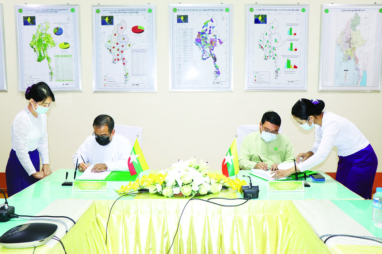 သမဝါယမနှင့်ကျေးလက်ဖွံ့ဖြိုးရေးဝန်ကြီးဌာန ကျေးလက်ဒေသဖွံ့ဖြိုးတိုးတက်ရေး ဦးစီးဌာနနှင့် ရွှေ(ကျေးလက်နှင့် မြို့ပြ) ဖွံ့ဖြိုးတိုးတက်ရေး ဘဏ်လီမိတက် (Shwe Bank) တို့ ပူးပေါင်း၍ မြစိမ်းရောင် စီမံကိန်းကျေးရွာ ကိုးရွာတွင် Mobile Financial Payment စနစ်ဖြင့် ချေးငွေထုတ်ယူနိုင်ရေး သဘောတူစာချုပ် လက်မှတ်ရေးထိုးပွဲ အခမ်းအနားကို ယနေ့ နံနက် ၁၀ နာရီတွင် ရုံးအမှတ် (၃၆) ကျေးလက်ဒေသ ဖွံ့ဖြိုးတိုးတက်ရေးဦးစီးဌာန၌ ကျင်းပသည်။