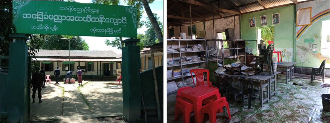 ထိုသို့လုပ်ဆောင်လျက်ရှိရာ ဇူလိုင်လ ၂၇ ရက်နေ့ နံနက် ၉ နာရီအချိန်တွင် ဧရာ၀တီတိုင်းဒေသကြီး၊ ပန်းတနော်မြို့နယ်၊ လက်ပန်ကုန်းကျေးရွာရှိ အခြေခံပညာ အလယ်တန်းကျောင်း၌ အကြမ်းဖက်သမားများက မီးရှို့ထွက်ပြေးသွားခဲ့သဖြင့် မီးလောင်မှုဖြစ်ပွားကြောင်း သတင်းအရ လုံခြုံရေးတပ်ဖွဲ့ဝင်များ၊ မီးသတ်တပ်ဖွဲ့ဝင်များ ပါဝင်သော ပူးပေါင်းအဖွဲ့က သွားရောက်မီးငြှိမ်းသတ် ခဲ့ရာ ၃၅ မိနစ်အကြာတွင် မီးငြိမ်းသွားခဲ့ပြီး မီးလောင်မှုကြောင့် ကျောင်းရုံးခန်းနှင့် စာကြည့်တိုက် တွဲလျက်အဆောက်အဦ အတွင်းရှိ စာရွက်စာတမ်းများ၊ ပြဌာန်းစာအုပ်များ၊ သံဗီရို ၁ လုံး၊ သစ်သား ဗီရို ၂ လုံး၊ ဆုံလည်ကုလားထိုင် ၁ လုံးတို့ မီးလောင် ပျက်စီးဆုံးရှုံးခဲ့ကြောင်း သိရသည်။