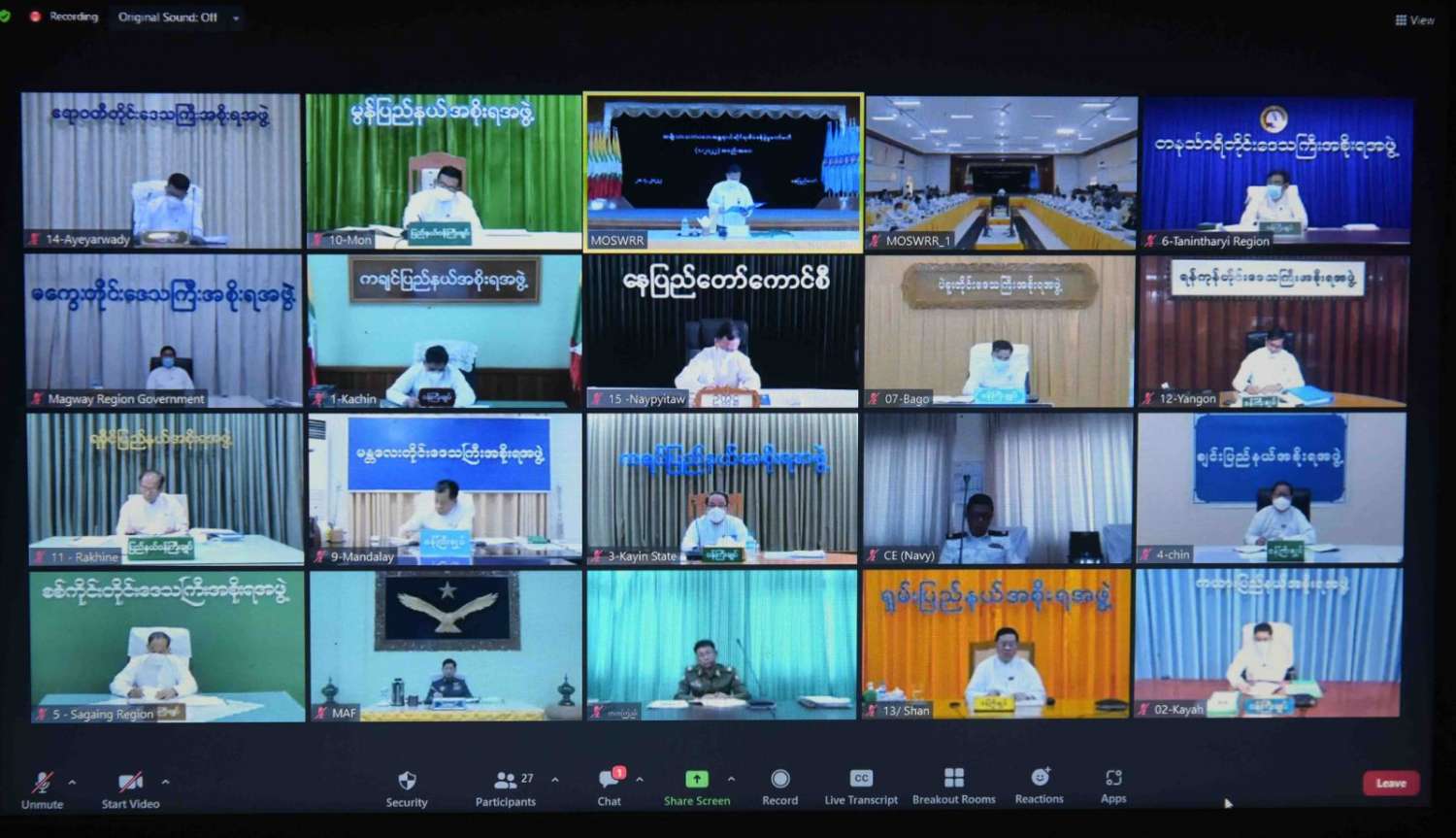 အစည်းအဝေးသို့ ပြည်ထောင်စုဝန်ကြီးများ၊ ဒုတိယဝန်ကြီးများ၊ ညွှန်ကြားရေးမှူးချုပ်များနှင့် တာဝန်ရှိသူများ တက်ရောက်ကြပြီး နေပြည်တော်ကောင်စီ၊ တိုင်းဒေသကြီးနှင့် ပြည်နယ်ဝန်ကြီးချုပ်များနှင့် တာဝန်ရှိသူများက ဗီဒီယိုကွန်ဖရင့်စနစ်ဖြင့် တက်ရောက်ကြသည်။