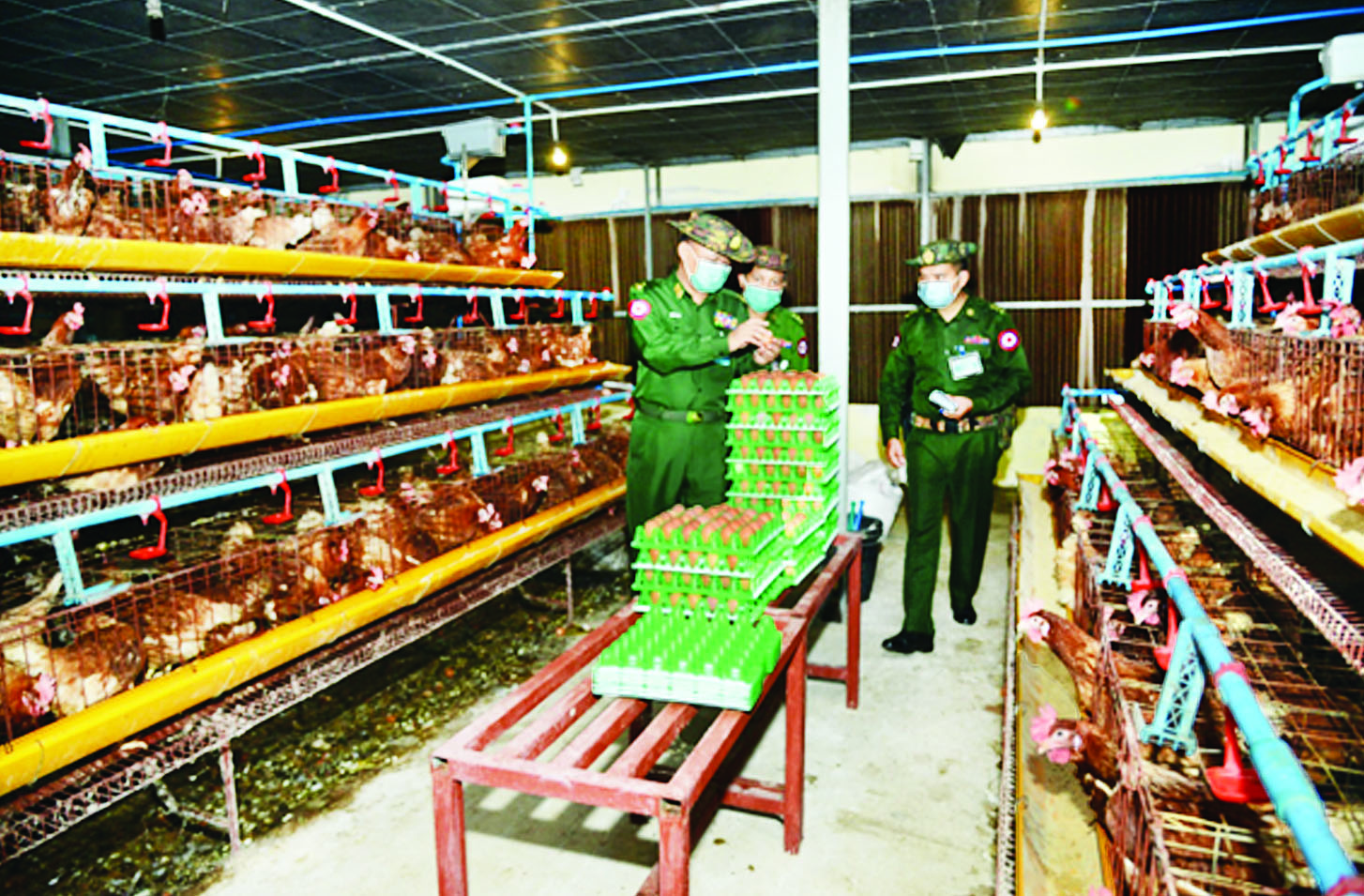 ဒေသတွင်းစားနပ်ရိက္ခာဖူလုံရေးနှင့် ပြည်သူများ၏ စားသောက်ရေးကို အထောက်အကူဖြစ်စေရန် ယနေ့နံနက်ပိုင်းတွင် နေပြည်တော်တိုင်းစစ်ဌာနချုပ်တိုင်းမှူး ဗိုလ်ချုပ်ဇော်ဟိန်းနှင့် တာဝန်ရှိသူများသည် တိုင်းစစ်ဌာနချုပ်၊ စံပြဘက်စုံစိုက်ပျိုးမွေးမြူရေးခြံ၌ အသားတိုးကြက်မွေးမြူထားရှိမှု၊ Evap Type ဥစားကြက်မွေးမြူထားရှိမှု၊ နို့စားနွားမွေးမြူထားရှိမှု၊ အသားတိုးနွားမွေးမြူထားရှိမှု၊ DYL ဝက်မွေးမြူထားရှိမှုနှင့် နေရောင်ပြအင်း၌ ငါးမွေးမြူရေးလုပ်ငန်း၊ ဘဲမွေးမြူရေးလုပ်ငန်းတို့ကို ကြည့်ရှုစစ်ဆေးပြီး တာဝန်ရှိသူများနှင့်တွေ့ဆုံကာ လိုအပ်သည်များ ပေါင်းစပ်ညှိနှိုင်းဆောင်ရွက်ပေးခဲ့ကြောင်း သိရသည်။