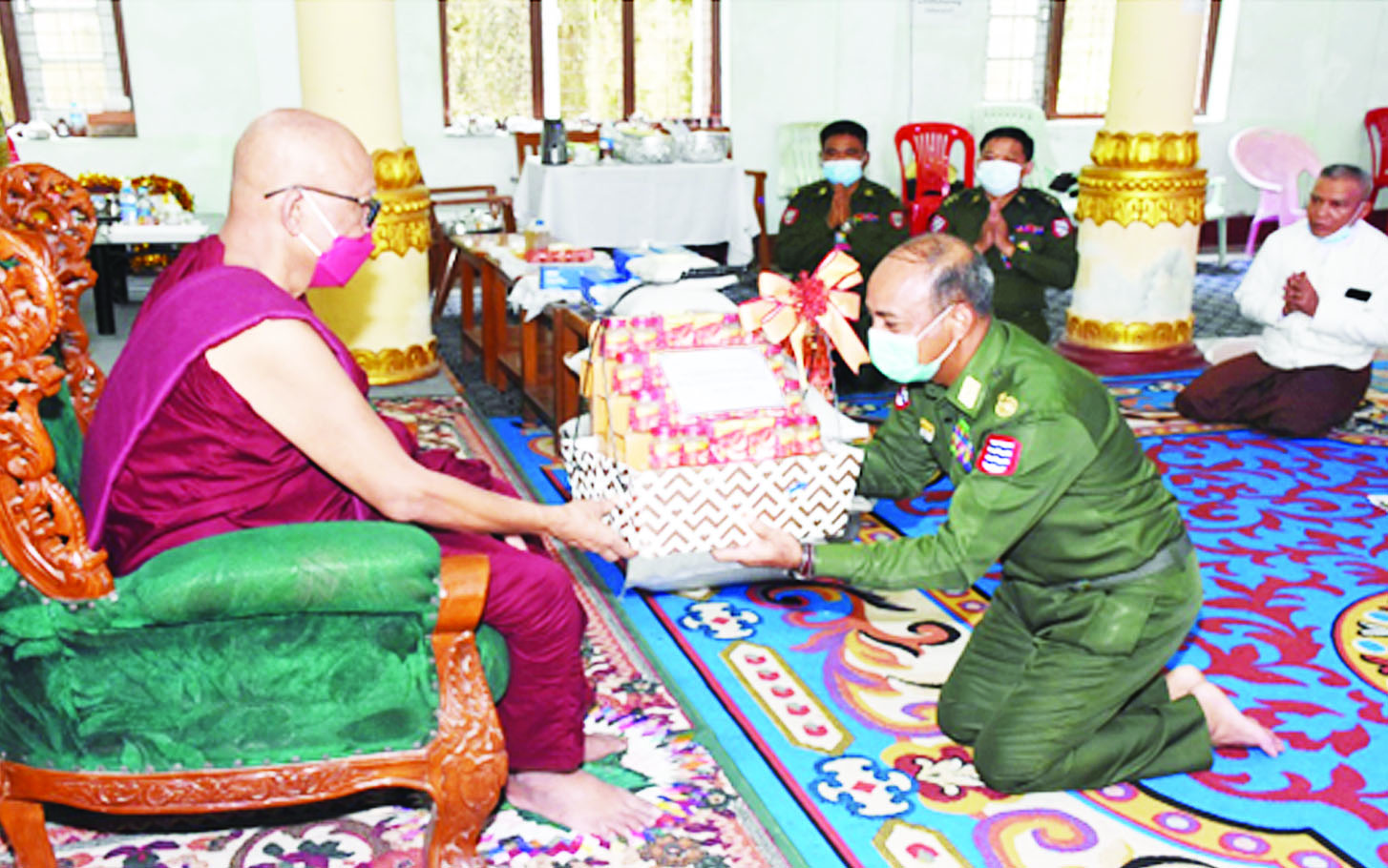 တပ်မတော် (ကြည်း၊ ရေ၊ လေ) အရာရှိ၊ စစ်သည်၊ အရာထမ်း၊ အမှုထမ်းများနှင့် စေတနာရှင် အလှူရှင်များက မြို့နယ် အသီး သီးရှိ ဘုန်းတော်ကြီးကျောင်းများ၊ သာသနာ့နွယ်ဝင် သီလရှင် ကျောင်းများနှင့် ဘာသာရေး ကျောင်းများသို့ ဆွမ်းဆန်တော်၊ ဆီ၊ ဆား၊ ပဲ အမယ်လေးမျိုးနှင့် လှူဖွယ်ပစ္စည်းများ လှူဒါန်းခြင်း၊ နေ့ဆွမ်းများ ဆက်ကပ်လှူဒါန်းလျက်ရှိသည်။