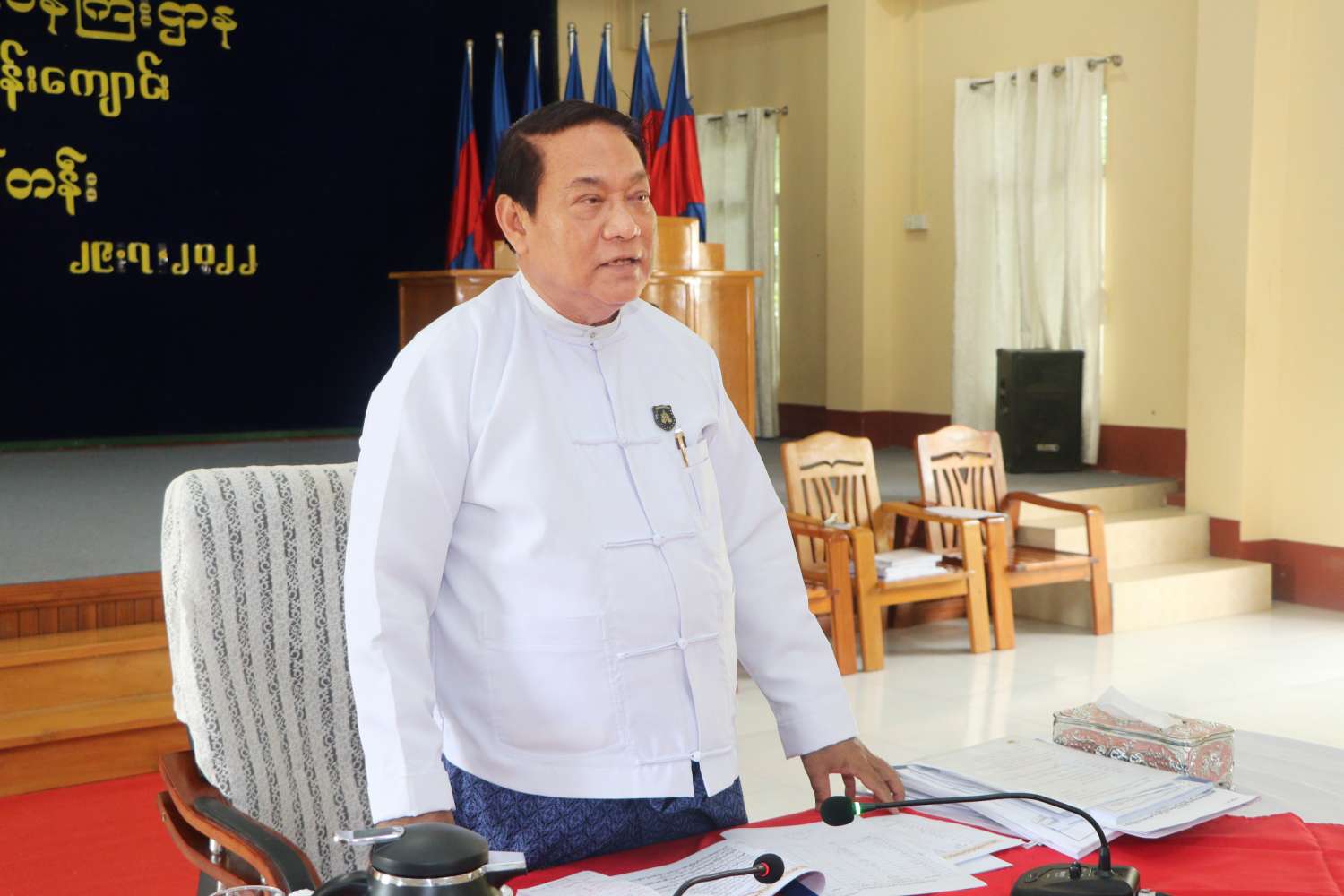 တွေ့ဆုံစဉ် ပြည်ထောင်စုဝန်ကြီးက သင်တန်းသားများကို နိုင်ငံအတွင်း ဥပဒေအရ အမြဲနေနိုင်ငံခြားသားအပါအဝင် အကြောင်းအမျိုးမျိုးကြောင့် ဝင်ရောက်သွားလာသည့် နိုင်ငံခြားသားများကို သွားလာနိုင်နေထိုင်လုပ်ကိုင်ဆောင်ရွက်မှုများ ဥပဒေနှင့်အညီ စနစ်တကျ ဖြစ်စေရေးအတွက် လူဝင်မှုကြီးကြပ်ရေးဆိုင်ရာ စီမံခန့်ခွဲမှုစနစ် အဆင့်မြင့်တင်ခြင်းလုပ်ငန်းကို မိမိတို့ဌာနမှ ကြိုးပမ်းအကောင်အထည်ဖော်ဆောင်ရွက်လျက်ရှိပါကြောင်း၊ ယင်းလုပ်ငန်းစဉ်များသည် နိုင်ငံတော်၏ အချုပ်အခြာအာဏာ အမျိုးသားအကျိုးစီးပွားတို့နှင့် ဆက်စပ်လျက်ရှိပါကြောင်း၊ နိုင်ငံခြားသားထိန်းသိမ်းရေးလုပ်ငန်းနှင့် ပတ်သက်၍ ကိုယ်ရေးအထောက်အထား စာရွက်စာတမ်းများအား ပြည့်စုံမှန်ကန်စွာ ဖြည့်သွင်းရေးသည် အရေးကြီးသည့်လုပ်ငန်းတစ်ခုဖြစ်ပြီး ရုံးအချင်းချင်း ကြပ်မတ်ဆောင်ရွက်ကြရန် လိုအပ်ပါကြောင်း၊ ပြည်တွင်း၌ အမြဲနေနိုင်ငံခြားသားမှတ်ပုံတင်ရေးနှင့် နှစ်စဉ်သက်မှတ်အခွန်ဆောင်နိုင်ရေးအတွက် စနစ်တကျဆောင်ရွက်ကြရန်လိုကြောင်း၊ ယင်းအချက်အလက်များအား မိမိတို့ဌာနမှ ဆောင်ရွက်နေသည့် e-ID စနစ်လုပ်ငန်းနှင့် ချိတ်ဆက်ဆောင်ရွက်သွားမည်ဖြစ်ရာ မှတ်တမ်းမှတ်ရာများ ပြည့်စုံမှန်ကန်ရေးအတွက် အလေးထားဆောင်ရွက်ကြရန်လိုကြောင်း၊ ယခင်ရှိပြီးသား ပြည်တွင်းနေ နိုင်ငံခြားသားမှတ်ပုံတင်ခြင်းလုပ်ငန်းကို ပိုမိုတိကျမှန်ကန်စေရေးအတွက် အောက်ခြေမြေပြင်ကွင်းဆင်းကာ လုပ်ထုံးလုပ်နည်းများအတိုင်း ကောက်ယူဖြည့်သွင်းဆောင်ရွက်ရမည်ဖြစ်ပါကြောင်း၊ နိုင်ငံနှင့် ပြည်သူအတွက် ထိရောက်သော ဝန်ဆောင်မှုများပေးနိုင်ရန် မိမိတို့၏လုပ်ငန်းများကို တာဝန်ရှိသူအားလုံးက နားလည်သဘောပေါက်ပြီး အောက်ခြေဝန်ထမ်းများအား မှန်ကန်သောဦးဆောင်မှုပေးကာ ကွပ်ကဲကြပ်မတ်ကြရန်လိုကြောင်း ရှင်းလင်းမှာကြားကာ သင်တန်းသားများအား ရင်းရင်းနှီးနှီး နှုတ်ဆက်သည်။