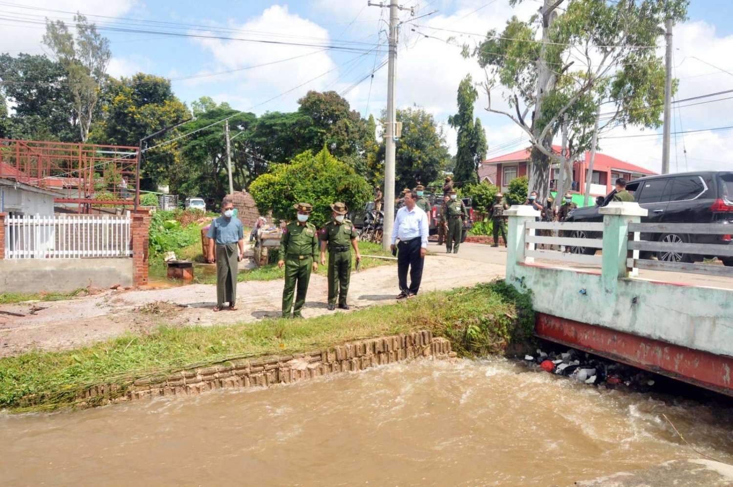 အဆိုပါ ရေကြီးရေလျှံမှုများဖြစ်၍ ကူညီကယ်ဆယ်ရေး လုပ်ငန်းများ ဆောင်ရွက်နေသည့် နေရာများသို့ အလယ်ပိုင်းတိုင်းစစ်ဌာနချုပ် တိုင်းမှူး ဗိုလ်ချုပ်ကိုကိုဦး၊ လုံခြုံရေးနှင့် နယ်စပ်ရေးရာဝန်ကြီး ဗိုလ်မှူးကြီးကျော်ကျော်မင်း၊ မြို့တော်ဝန် ဦးကျော်ဆန်း၊ မန္တလေးတိုင်းဒေသကြီး မီးသတ်ဦးစီးဌာန ညွှန်ကြားရေးမှူး ဦးဇော်ဝင်းထွန်း၊ မန္တလေးတိုင်း ဒေသကြီး ရဲတပ်ဖွဲ့မှူး ရဲမှူးချုပ်စိန်လွင်နှင့် ပြင်ဦးလွင်တပ်နယ်မှူးနှင့် တာဝန်ရှိသူများ၊ ခရိုင်နှင့် မြို့နယ်စီမံ အုပ်ချုပ်ရေးအဖွဲ့များက သွားရောက်လှည့်လည် ကြည့်ရှုစစ်ဆေးကာ လိုအပ်သည်များ ပံ့ပိုးကူညီပေးခဲ့ပြီး ထမင်းနှင့် ရေသန့်ဘူးများလည်း ထောက်ပံ့ပေးခဲ့ကြကြောင်း သိရသည်။