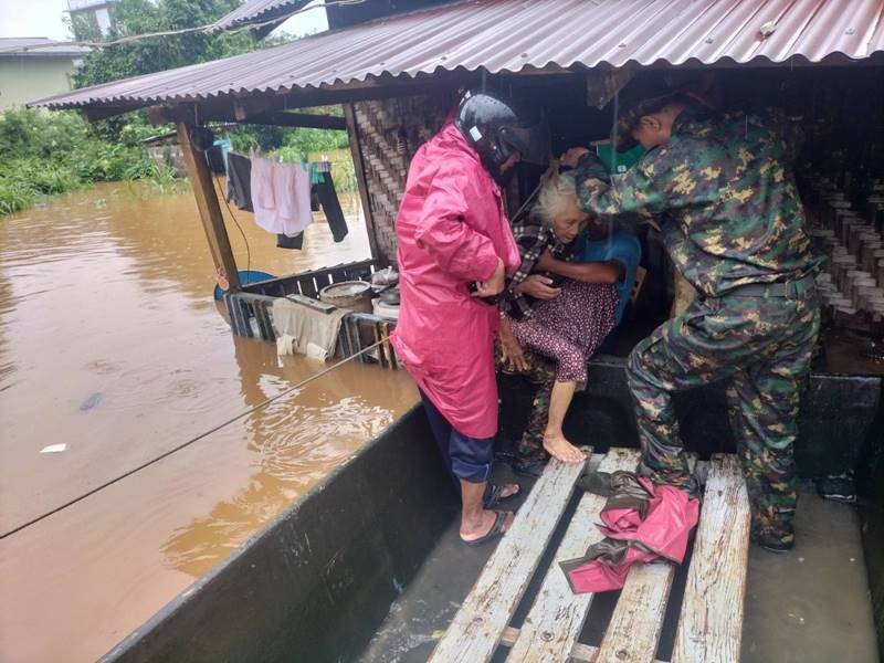 အဆိုပါ ရေဝင်ရောက်ခဲ့သည့်နေရာများသို့ ဇူလိုင် ၃၁ ရက်နှင့် ယနေ့တို့တွင် နယ်မြေခံတပ်မတော်သားများ၊ မြန်မာနိုင်ငံရဲတပ်ဖွဲ့ဝင်များ၊ မီးသတ်တပ်ဖွဲ့ဝင်များ၊ ဌာနဆိုင်ရာဝန်ထမ်းများနှင့် စေတနာ့ဝန်ထမ်းများက သွားရောက်၍ ရေဘေးသင့်ပြည်သူများအား ရေဘေးလွတ်ရာသို့ ရွှေ့ပြောင်းကူညီကယ်ဆယ်ခြင်း၊ ပြိုကျပျက် စီးပိတ်ဆို့ခဲ့သည့် အဆောက်အဦများ၊ လမ်းတံတားများအား ဖယ်ရှားရှင်းလင်းပေးခြင်းများကို ဆောင်ရွက်ပေးခဲ့ကြသည်။