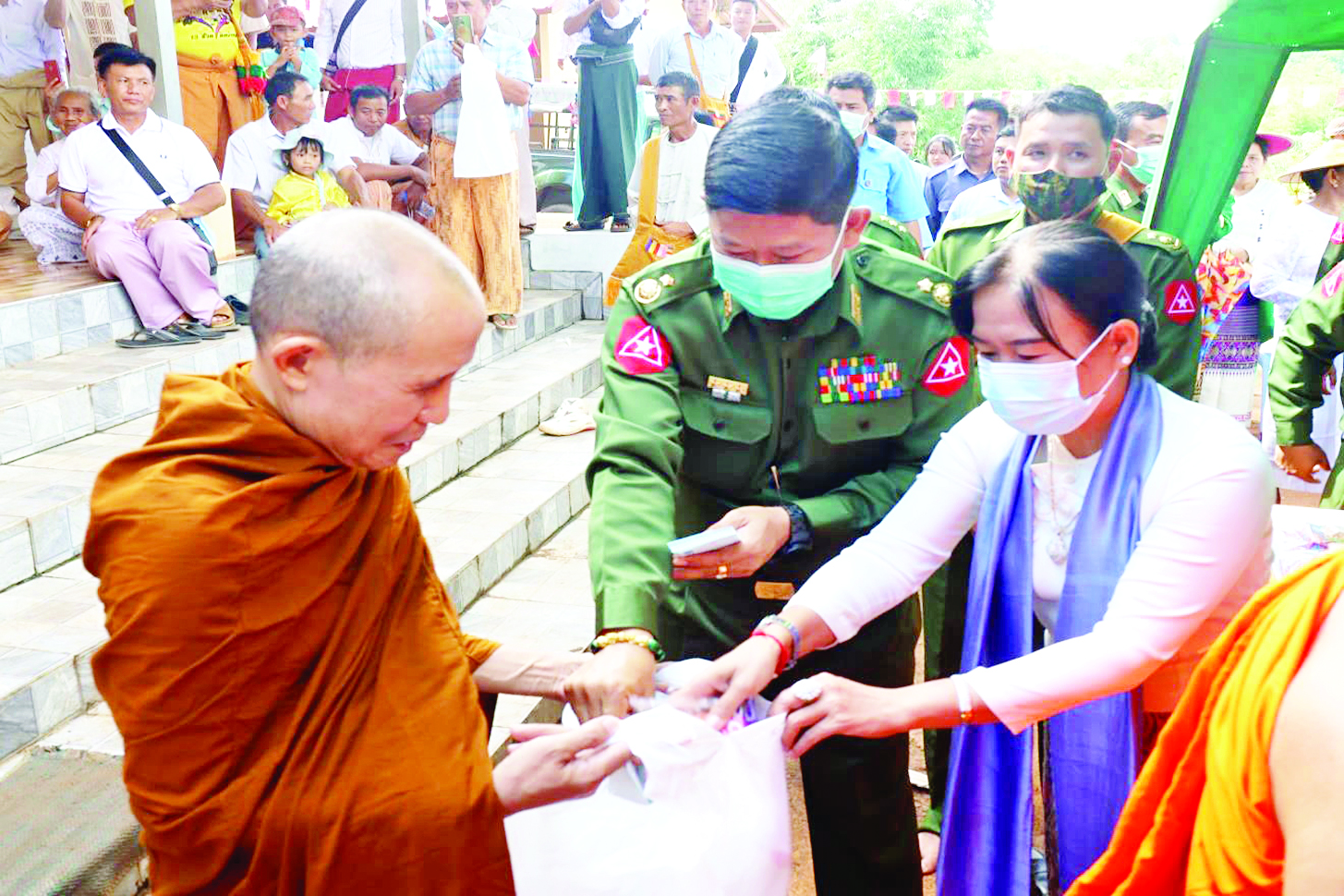 ဦးစွာ တိုင်းမှူးနှင့် တက်ရောက်လာကြသူများက သံဃာတော်များအား သိမ်ထွက်သိမ်ဆွမ်းများ လောင်းလှူကြသည်။ ထို့နောက် မူဆယ်မြို့ လွယ်တိန်ခမ်းထေရ ဝါဒသာသနာပြုကျောင်း ဦးစီးပဓာန နာယကဆရာတော် အဂ္ဂမဟာကမ္မဋ္ဌာနာစရိယ မဟာသဒ္ဓမ္မ ဇောတိကဓဇ ဘဒ္ဒန္တသုခမိန္ဒထံမှ တိုင်းမှူးနှင့် တက်ရောက်လာကြသူများက ငါးပါးသီလခံယူဆောက်တည်ကြပြီး သံဃာတော်များ ရွတ်ပွားချီးမြှင့်တော်မူသည့် ပရိတ်တရားတော်များကိုနာယူကာ သံဃာတော်များအား လှူဖွယ်ပစ္စည်းများနှင့် အလှူငွေများ ဆက်ကပ်လှူဒါန်းကြသည်။
