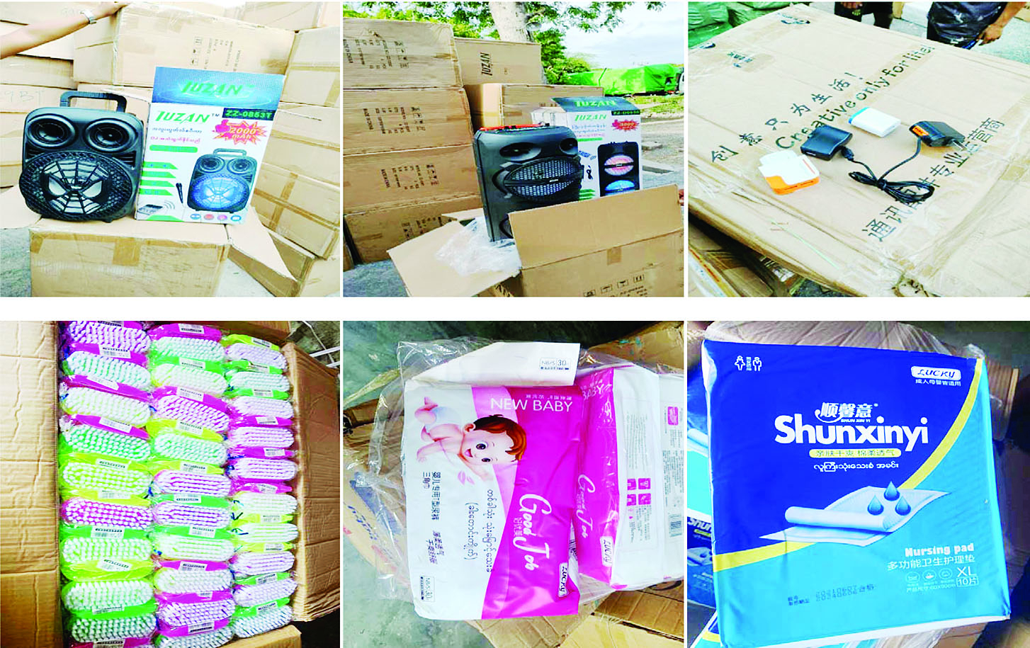 ထို့အတူ မန္တလေးတိုင်းဒေသကြီး တရားမဝင်ကုန်သွယ်မှုတိုက်ဖျက်ရေးအထူးအဖွဲ့၏ စီမံခန့်ခွဲမှုဖြင့်(၁၆)မိုင် ကျောက်ချောစစ်ဆေးရေးစခန်း၌ တာဝန်ကျပူးပေါင်းအဖွဲ့က စစ်ဆေးမှုများ ဆောင်ရွက်ခဲ့ရာ သွင်းကုန်ကြေညာလွှာ(ID)တွင် ကြေညာထားခြင်းမရှိသည့် Speaker မျိုးစုံ၊ မိုဘိုင်းဖုန်းဆက်စပ်ပစ္စည်းနှင့် လူသုံးကုန်ပစ္စည်းများ (ခန့်မှန်းတန်ဖိုးငွေကျပ် ၂၈၀၉၈၆၄၀)နှင့် အဆိုပါပစ္စည်းများ တင်ဆောင်လာသည့် မစ်ဆူဘီရှီဖဂူဘို အမျိုးအစား ၁၂ ဘီး ကုန်တင် ယာဉ်တစ်စီး (ခန့်မှန်းတန်ဖိုးငွေကျပ် ၁၈၀၀၀၀၀၀)စုစုပေါင်း (ခန့်မှန်း တန်ဖိုးငွေကျပ် ၄၆၀၉၈၆၄၀)ကို ဖမ်းဆီးရမိခဲ့ပြီး အကောက်ခွန်လုပ်ထုံးလုပ်နည်းနှင့်အညီ အရေးယူဆောင်ရွက် လျက်ရှိသည်။