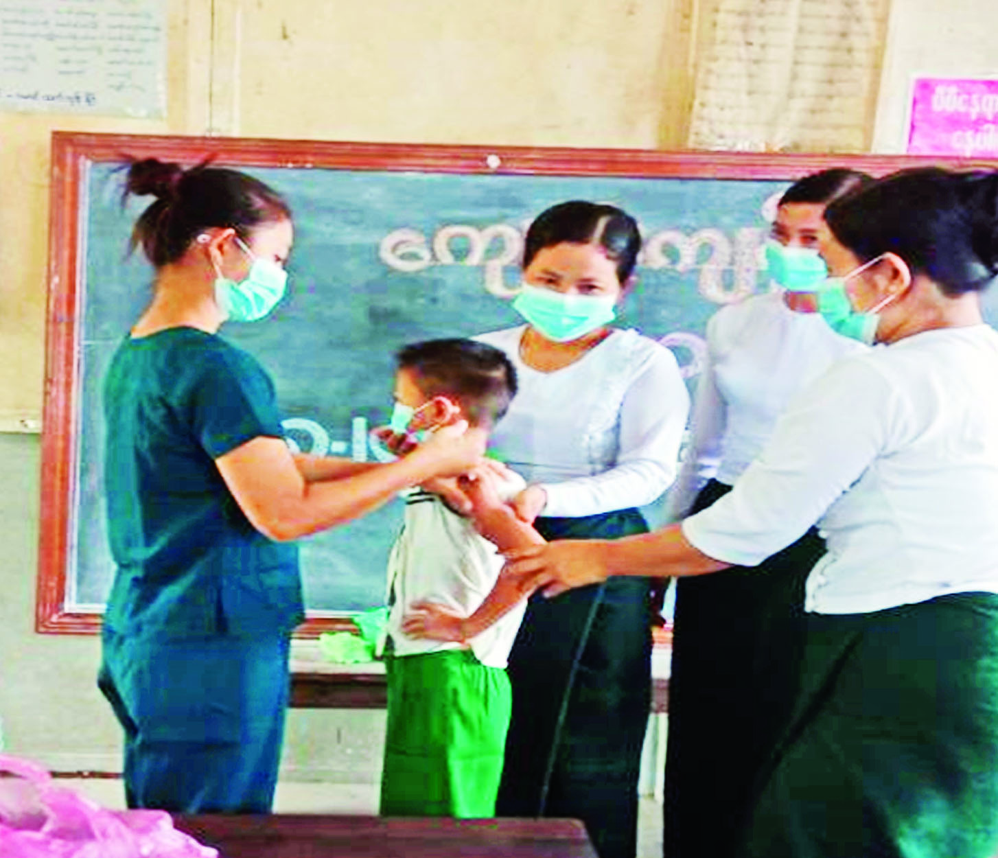 ထို့အတူ ကျောင်းသား ကျောင်းသူများကိုလည်း ကိုဗစ်- ၁၉ ရောဂါကာကွယ်ဆေးများ ထိုးနှံပေးလျက်ရှိရာယနေ့တွင် ဧရာဝတီတိုင်းဒေသကြီးအတွင်းရှိ မြို့နယ် ၂၆ မြို့နယ်တို့၌ ကျောင်းသား ကျောင်းသူ ၇၀၁၀ (အောက်ပုံ)၊ ရခိုင်ပြည်နယ်အတွင်းရှိ မြို့နယ်ငါးမြို့နယ်တို့၌ ကျောင်းသား ကျောင်းသူ ၁၃၆၃ ဦးကို တပ်မတော်မှဆေးအဖွဲ့များက ပြည်သူ့ဆေးရုံများမှ ဆရာဝန်များ၊ သက်ဆိုင်ရာကျန်းမာရေးဝန်ထမ်းများ၊ စေတနာ့ဝန်ထမ်းများနှင့်ပူးပေါင်း၍ ကိုဗစ်-၁၉ ရောဂါ ကာကွယ်ဆေးထိုးနှံပေးသည်။