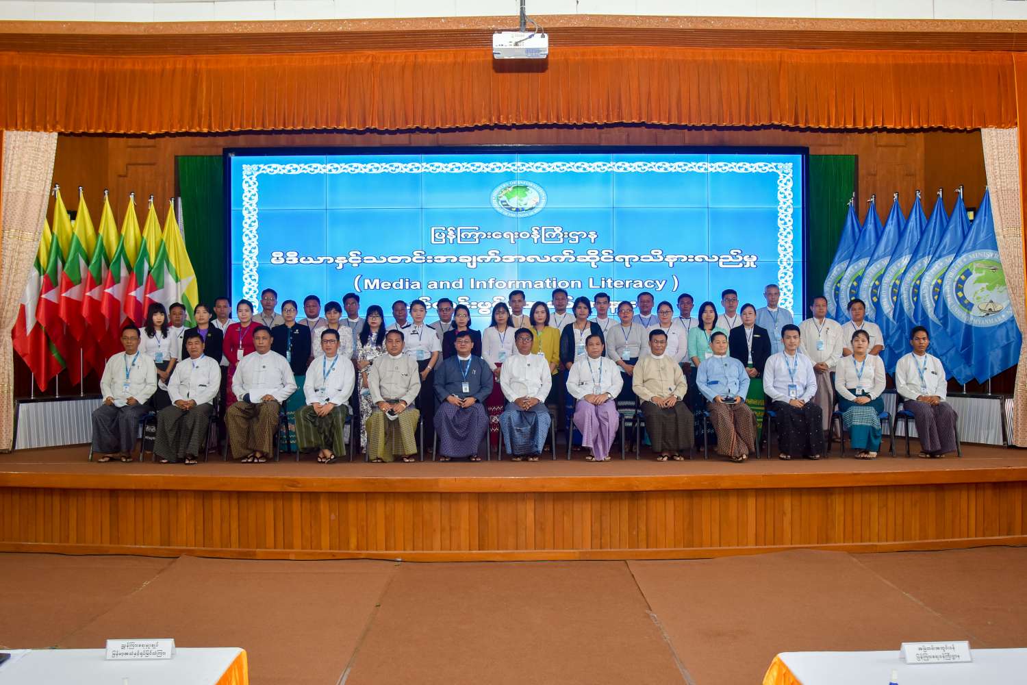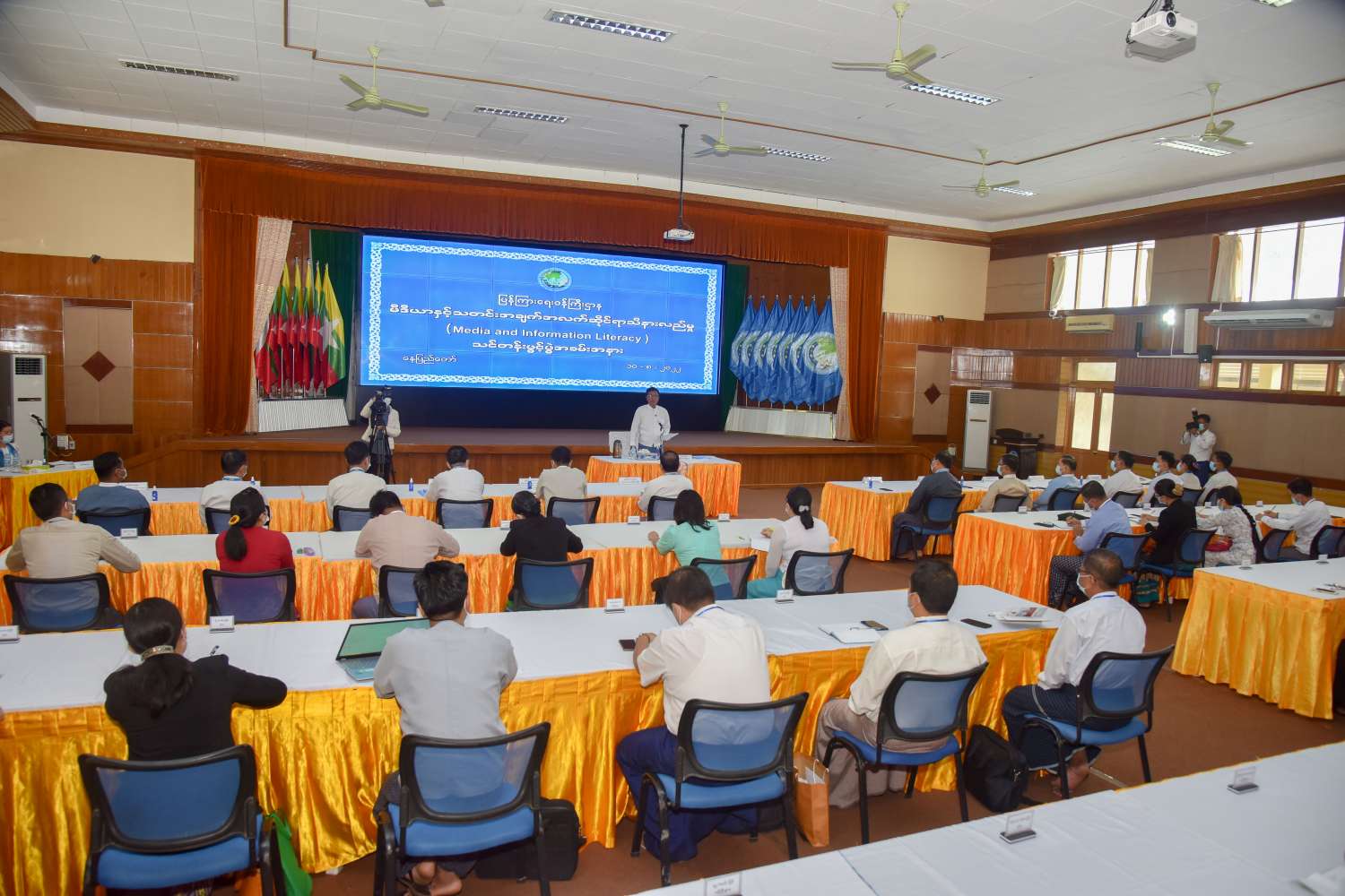 ပြန်ကြားရေးဝန်ကြီးဌာနက ကြီးမှူးဖွင့်လှစ်သည့် မီဒီယာနှင့် သတင်းအချက်အလက်ဆိုင်ရာ သိနားလည်မှု (Media and Information Literacy) သင်တန်း ဖွင့်ပွဲအခမ်းအနားကို ဩဂုတ်လ ၁၀ ရက်၊ နံနက် ၉ နာရီခွဲအချိန်က ပြန်ကြားရေးဝန်ကြီးဌာန စုပေါင်းခန်းမ၌ ကျင်းပသည်။