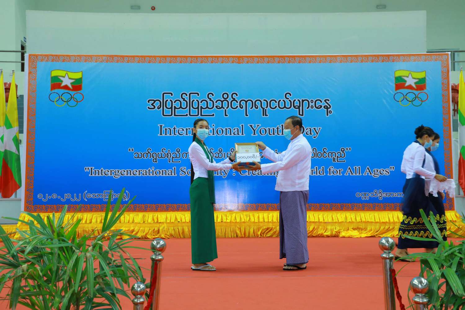 ထို့နောက် လူငယ်များကိုယ်စား အပြည်ပြည်ဆိုင်ရာလူငယ်များနေ့ အထိမ်းအမှတ် စာစီစာကုံး ပြိုင်ပွဲတွင် ပထမဆုရရှိခဲ့သည့် မသီရိနန်းစံက လူငယ်များဘက်စုံဖွံ့ဖြိုး တိုးတက်ရေး အတွက် ဖြည့်ဆည်းဆောင်ရွက်ပေးရန်အချက်များကို တာဝန်ရှိသူများထံ တင်ပြခဲ့ကြောင်း သိရသည်။
