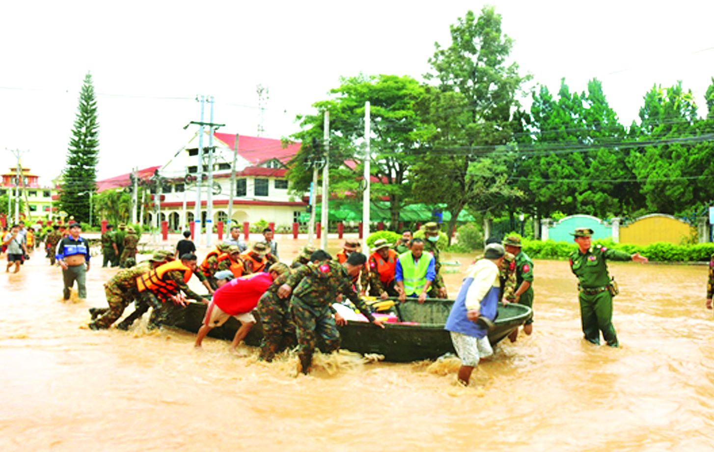 ထိုသို့ ဆောင်ရွက်ပေးနေမှုများကို တြိဂံဒေသတိုင်းစစ်ဌာနချုပ် တိုင်းမှူး ဗိုလ်ချုပ် မျိုးမင်းထွန်းနှင့် တာချီလိတ်တပ်နယ်မှ တာဝန်ရှိသူများက သွားရောက်ကြည့်ရှုအားပေးကြပြီး ရေဘေးသင့်ပြည်သူများအား ဆေးဝါးများနှင့် စားသောက်ဖွယ်ရာများ ထောက်ပံ့ပေးအပ်ကာ လိုအပ်သည်များညှိနှိုင်း ဆောင်ရွက်ပေးခဲ့ကြကြောင်း သိရသည်။