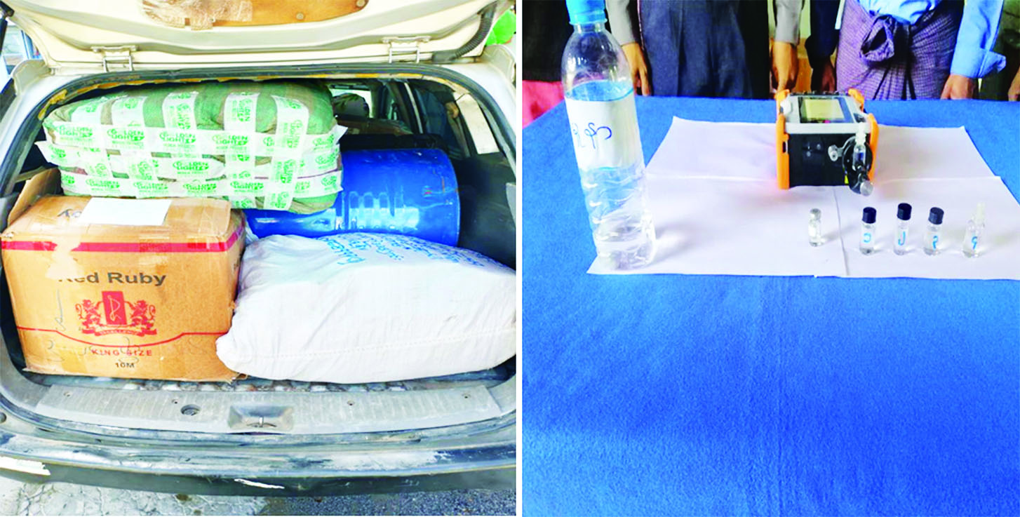 အလားတူ မန္တလေးတိုင်းဒေသကြီး တရားမဝင်ကုန်သွယ်မှုတိုက်ဖျက်ရေးအထူးအဖွဲ့၏ စီမံခန့်ခွဲမှုဖြင့်(၁၆)မိုင် ကျောက်ချောစစ်ဆေးရေးစခန်း၌ တာဝန်ကျပူးပေါင်းအဖွဲ့က စစ်ဆေးမှုများဆောင်ရွက်ရာ သြဂုတ် ၉ ရက်တွင် မန္တလေးမှ မူဆယ်သို့ မောင်းနှင်လာသော မော်တော်ယာဉ်တစ်စီးပေါ်မှ မုန့်ဖာများနှင့် ခရီးသည်အိတ်များဖြင့် ဖုံးအုပ်၍ တရားမဝင်တင်ဆောင်လာသော မြွေဟောက်အရှင် အရွယ်စုံ ၅၁ ကောင်(ခန့်မှန်း တန်ဖိုးငွေကျပ် ၅၁၀၀၀၀) နှင့် အဆိုပါတိရစ္ဆာန်များ တင်ဆောင်လာသော JINBEI HAISE အမျိုးအစား မော်တော်ယာဉ်တစ်စီး (ခန့်မှန်းတန်ဖိုး ငွေကျပ် ၁၃၀၀၀၀၀၀)ကို လည်းကောင်း၊ သြဂုတ် ၁၁ ရက်တွင် မန္တလေးမှမူဆယ်သို့ မောင်းနှင်လာသည့် မော်တော်ယာဉ်တစ်စီးပေါ်မှ ခရစ်ယာန်ကျမ်းစာအုပ် အထုပ်များဖြင့် ဖုံးအုပ်ထားသော တရားမဝင်တင်ဆောင်လာသည့် Toluene ဟု ယူဆရသော အရည်ပုံးများ လီတာ ၁၇၀ (ခန့်မှန်း တန်ဖိုးငွေကျပ် ၂၃၈၀၀၀၀) နှင့် အဆိုပါပစ္စည်းများ တင်ဆောင်လာသော Nissan AD Van အမျိုး အစား မော်တော်ယာဉ်တစ်စီး (ခန့်မှန်းတန်ဖိုး ငွေကျပ် ၁၂၀၀၀၀၀၀) ကိုလည်းကောင်း စုစုပေါင်း(ခန့်မှန်းတန်ဖိုးငွေကျပ် ၂၇၈၉၀၀၀၀)ကို ဖမ်းဆီးရမိခဲ့ပြီး အကောက်ခွန်လုပ်ထုံးလုပ်နည်းနှင့်အညီ အရေးယူဆောင်ရွက်လျက်ရှိသည်။