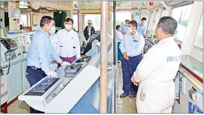 ထို့နောက် ဒုတိယဝန်ကြီးသည် မြန်မာ့သင်္ဘောကျင်းလုပ်ငန်းသို့ သွားရောက်ကြည့်ရှုစစ်ဆေးပြီး အစည်းအဝေးခန်းမတွင် ဦးဆောင်ညွှန်ကြားရေးမှူးနှင့် တာဝန်ရှိသူများက မြန်မာ့သင်္ဘော ကျင်းလုပ်ငန်း၏ရေယာဉ် တည်ဆောက်ခြင်းနှင့် ပြုပြင်ခြင်းဆိုင်ရာကိစ္စများကို ရှင်းလင်းတင်ပြရာ ဒုတိယဝန်ကြီးက လိုအပ်သည်များကို ဆွေးနွေး ပေါင်းစပ်ညှိနှိုင်းပေးခဲ့ပြီး အရာထမ်း၊ အမှုထမ်းများအား စားသောက်ဖွယ်ရာများ ထောက်ပံ့ပေးအပ်သည်။ ဆက်လက်ပြီး ဒုတိယဝန်ကြီးသည် တန်ချိန် ၁၂၀၀၀ ရေလုံလွန်းကျင်း၌ မြန်မာ့ကြယ်ငါးပွင့်သင်္ဘောလုပ်ငန်းမှ MV ဥဿရေယာဉ် လွန်းတင်ထားမှု၊ ရေလုံလွန်းကျင်းနှင့် ဆက်စပ်လုပ်ငန်းများအခြေအနေ၊ ရေယာဉ်ပြုပြင်ရေး အလုပ်ရုံတို့ကို ကြည့်ရှုစစ်ဆေး၍ လိုအပ်သည်များ မှာကြားခဲ့ကြောင်း သိရသည်။