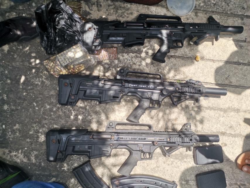 အရှင်ဖမ်းဆီးရမိခဲ့သည့် PDF အမည်ခံအကြမ်းဖက် ၁ ဦးကို အသေးစိတ်စစ်ဆေးခဲ့ရာ ကားပေါ်၌ သိုဝှက်သယ်ဆောင်လာသော ချေမှုန်းရေးရိုင်ဖယ်အမျိုးအစား (သေနတ်အသစ်) ၃ လက်နှင့် ခဲယမ်းများ ထပ်မံဖမ်းဆီးရမိခဲ့သည်။
