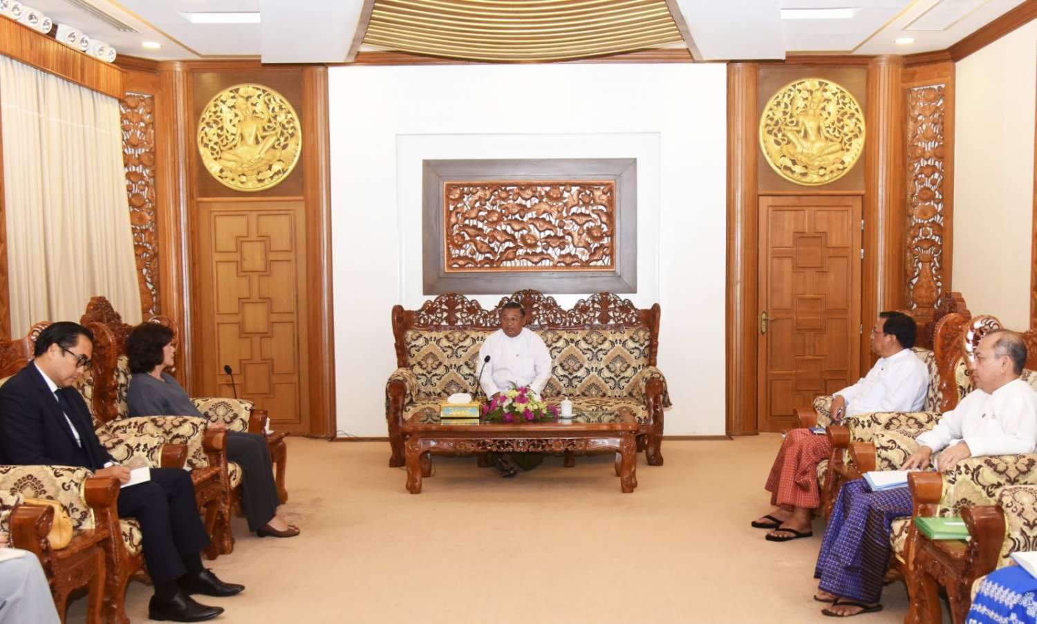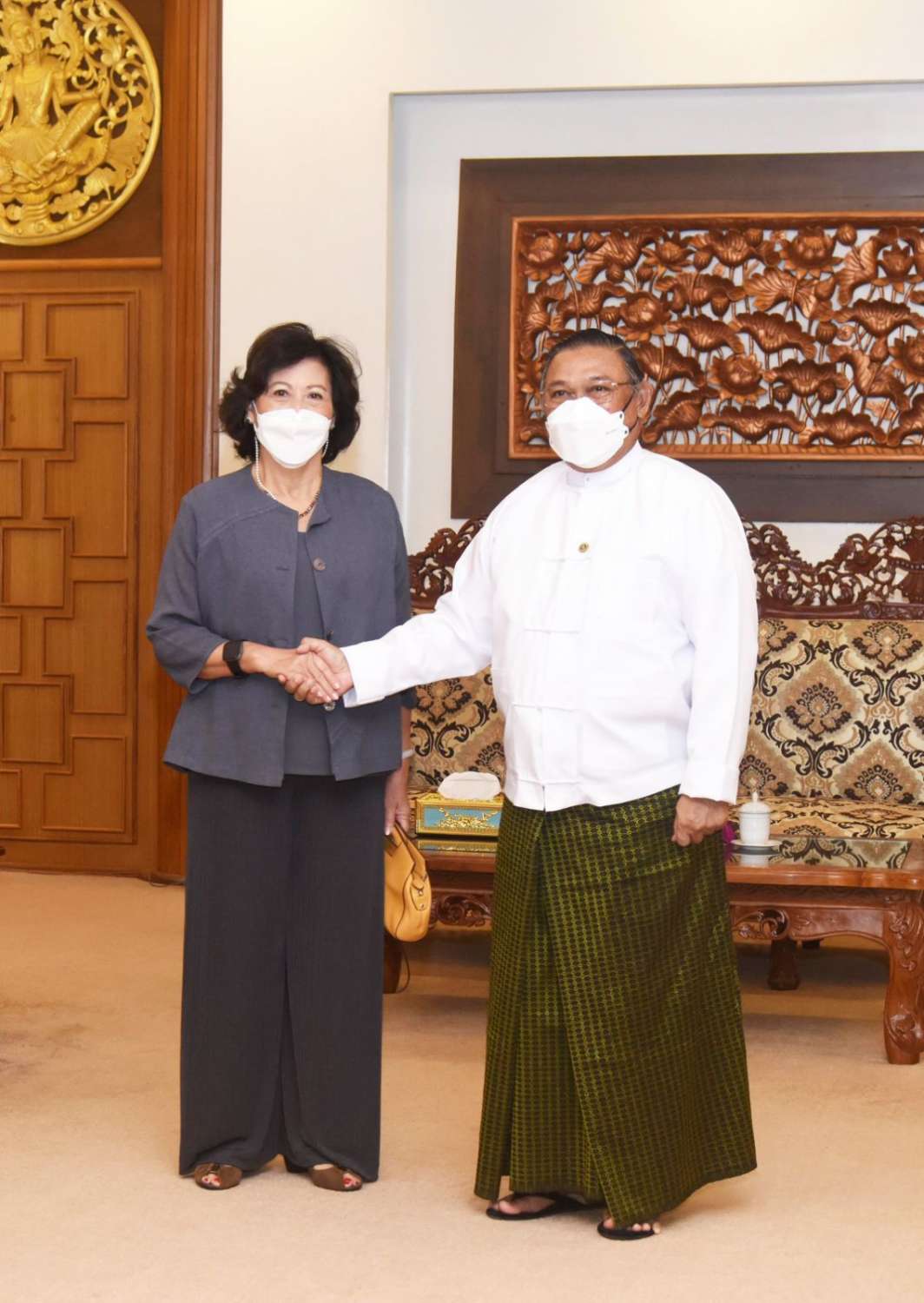 နိုင်ငံခြားရေးဝန်ကြီးဌာန ပြည်ထောင်စုဝန်ကြီး ဦးဝဏ္ဏမောင်လွင်သည် ကုလသမဂ္ဂ အတွင်းရေးမှူးချုပ်၏ မြန်မာနိုင်ငံဆိုင်ရာ အထူးကိုယ်စားလှယ် Ms. Noeleen Heyzer အား ၁၇-၈-၂၀၂၂ ရက်၊ နံနက် ၁၀:ဝ၀ နာရီတွင် နေပြည်တော်ရှိ နိုင်ငံခြားရေးဝန်ကြီးဌာန၌ လက်ခံ တွေ့ဆုံခဲ့သည်။