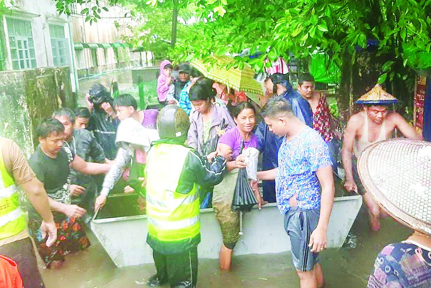 မွန်ပြည်နယ်အတွင်းရှိ ချောင်းဆုံ မြို့နယ် ကဒါကျေးရွာ၊ ကလော ကျေးရွာနှင့် ကွမ်သဲကျေးရွာ၊ မုဒုံ မြို့ရှိ မြို့မ ၄ ရပ်ကွက်၊ အုတ်ကျင်း ရပ်၊ လမိုင်းမြို့နယ်၊ ပေါင်မြို့နယ်၊ အလှပ်ကျေးရွာ၊ ကရင်ပြည်နယ် ကြာအင်းဆိပ်ကြီး မြို့နယ်၊ မော်လမြိုင်မြို့ရှိ သီရိမြိုင်ရပ်ကွက်၊ ရန်ကုန် တိုင်းဒေသကြီးအတွင်း မင်္ဂလာဒုံမြို့နယ်ရှိ ပေါက်ကုန်းရပ်ကွက်နှင့် ပလရရပ်ကွက်၊ ကြံခင်းစုရပ်ကွက်၊ မှော်ဘီမြို့နယ် သန္ဓေပင်ကျေးရွာ အုပ်စု ထိန်စွန်းကျေးရွာနှင့် သံတံတားကျေးရွာ၊ သန်လျင်မြို့နယ် ဗိုလ်ချုပ်ကျေးရွာ၊ အေးသာယာရပ်ကွက်၊ ကျောင်းတန်းမြို့နယ် မရမ်းဘေးကျေးရွာ၊ ပုတ္တလုတ်ကျေးရွာ၊ သုံးခွမြို့နယ် အတွင်းရှိ ကျေးရွာ ၂၉ ရွာ၊ ခရမ်းမြို့နယ် ဘိုကလေးကျေးရွာ နှင့် အုန်းပင်ကျေးရွာ၊ ရွှေပြည်သာ မြို့နယ်အတွင်းရှိ အမှတ် (၂၄) ရပ်ကွက်နှင့် အမှတ် (၂၆) ရပ်ကွက်၊ တောင်ဥက္ကလာပ မြို့နယ်အတွင်းရှိ အမှတ် (၁၂) ရပ်ကွက်၊ ဧရာဝတီ တိုင်းဒေသကြီးအတွင်း ကျိုက်လတ်မြို့နယ်၊ ထရော်ရွာသစ်နှင့် ကျုံမငဲ့ ကျေးရွာ၊ ငပုတောမြို့နယ် သစ်ရောင်းကျေးရွာအုပ်စု၊ သံပတ် ကွင်းကျေးရွာနှင့် ရခိုင်ပြည်နယ် အတွင်း ကျောက်ဖြူမြို့နယ်၊ အစိုးရရပ်ကွက်၊ စေတီတောင် ရပ်ကွက်၊ ကုလားဘာတောင် ရပ်ကွက်နှင့် မြစ်နားတန်းရပ်ကွက်တို့၌ ဩဂုတ် ၁၆ ရက်နှင့် ယနေ့တို့တွင် မိုးသည်းထန်စွာ ရွာသွန်းပြီး လေပြင်းတိုက်ခတ်မှု များကြောင့် ရေဝင်ရောက်မှုများ ဖြစ်ပေါ်ခဲ့သဖြင့် တောင်ကမ်းပါး ယံပြိုကျခြင်း၊ အဆောက်အအုံ၊ လူနေအိမ်၊ ဈေးဆိုင်များပျက်စီးခြင်း၊ အခြေခံပညာကျောင်းများ အုတ်တံတိုင်းပျက်စီးခြင်း၊ ကျေးလက် ဆေးပေးခန်းတို့မှာ အမိုးလန် ပျက်စီးခြင်းနှင့် တံတားများ ပျက်စီးခြင်းများ ဖြစ်ပေါ်ခဲ့သဖြင့် ယနေ့တွင် သက်ဆိုင်ရာ တိုင်းစစ် ဌာနချုပ်များမှ တပ်မတော်သား များက ကြက်ခြေနီတပ်ဖွဲ့ဝင်များ၊ မီးသတ်တပ်ဖွဲ့ဝင်များ၊ ဌာနဆိုင်ရာ ဝန်ထမ်းများနှင့်အတူ ရေဘေးသင့် ပြည်သူများအား ယာယီ ကယ်ဆယ်ရေးစခန်းနှင့် ရေဘေးလွတ်ကင်းရာ နေရာများသို့ ကူညီရွှေ့ပြောင်းပေးခြင်း၊ ပြိုကျ ပျက်စီးနေသော အဆောက် အအုံအမိုးများ ဖယ်ရှားရှင်းလင်းခြင်းနှင့် ပြန်လည်ပြင်ဆင်ခြင်း၊ မြေထပ်မံပြိုကျမှု မရှိစေရေး သစ်လုံးများရိုက်ခြင်းနှင့် လိုအပ်သည့် ကူညီကယ်ဆယ်ရေးလုပ်ငန်းများ ဆောင်ရွက်ပေးခဲ့ကြသည်။