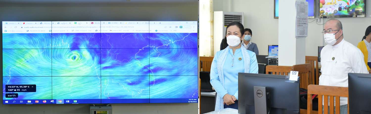 လူမှုဝန်ထမ်း၊ ကယ်ဆယ်ရေးနှင့် ပြန်လည်နေရာချထားရေးဝန်ကြီးဌာန ပြည်ထောင်စုဝန်ကြီး ဒေါက်တာသက်သက်ခိုင်၊ ဒုတိယဝန်ကြီး ဦးအောင်ထွန်းခိုင်နှင့် တာဝန်ရှိသူများသည် ယနေ့နံနက် ၁၀ နာရီတွင် ဘေးအန္တရာယ်ဆိုင်ရာစီမံခန့်ခွဲမှုဦးစီးဌာနတွင် ဖွင့်လှစ်ထားရှိသည့် အရေးပေါ်အခြေအနေစီမံခန့်ခွဲမှုဗဟိုဌာနသို့ သွားရောက်ကာ မိုးလေဝသနှင့်ဇလဗေဒညွှန်ကြားမှုဦးစီးဌာနမှ ယနေ့နံနက် ၆ နာရီတွင် ထုတ်ပြန်ထားသည့် ထူးခြားမိုးလေဝသအခြေအနေသတင်း အမှတ်စဉ်(၀၃/၂၀၂၂)နှင့်စပ်လျဉ်း၍ ဆောင်ရွက်ရန်လုပ်ငန်းများကို ကြည့်ရှုစစ်ဆေးသည်။
