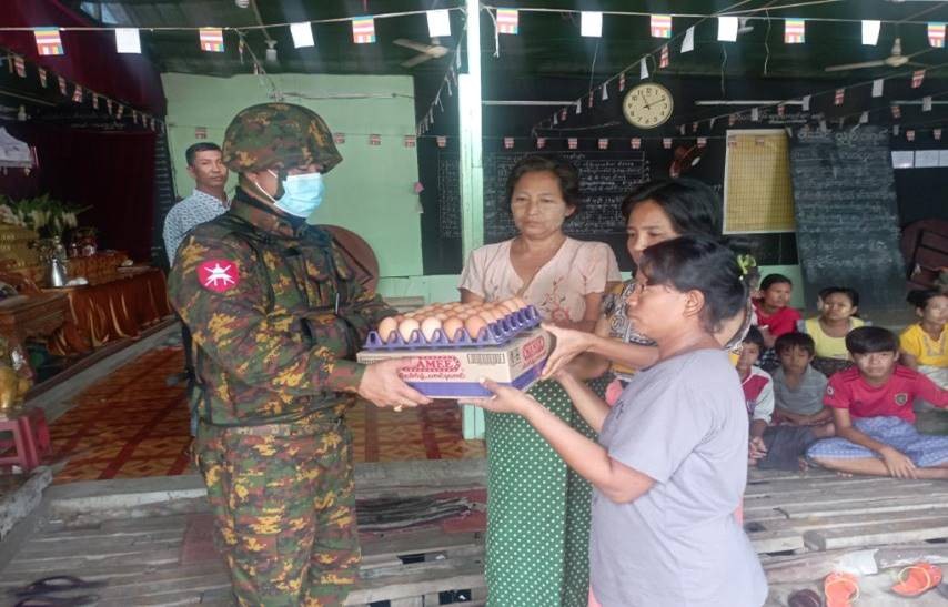 ထိုသို့ ဆောင်ရွက်ပေးနေမှုများကို သက်ဆိုင်ရာတိုင်းစစ်ဌာနချုပ်အသီးသီးမှ တာဝန်ရှိသူများက သွားရောက်ကြည့်ရှုကြပြီး ရေဘေးသင့်ပြည်သူများအား တွေ့ဆုံအားပေးစကားပြောကြားကာ စားသောက်ဖွယ်ရာများ ထောက်ပံ့ပေးအပ်ခဲ့သည်။