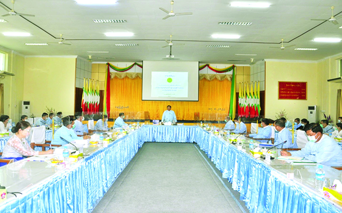 နိုင်ငံတော်စီမံအုပ်ချုပ်ရေးကောင်စီဥက္ကဋ္ဌ၏ လမ်းညွှန်ချက်များ ထပ်ဆင့်ရှင်းလင်းပွဲကို ယမန်နေ့နံနက်ပိုင်းက စက်မှုဝန်ကြီးဌာန အစည်းအဝေးခန်းမ၌ကျင်းပရာ ပြည်ထောင်စုဝန်ကြီး ဒေါက်တာချာလီသန်း၊ ဒုတိယဝန်ကြီး ဦးရင်မောင်ညွန့်၊ ဦးစီးဌာန/ စက်မှုလုပ်ငန်းများမှ ညွှန်ကြားရေးမှူးချုပ်များ၊ ဦးဆောင်ညွှန်ကြားရေးမှူးများ၊ ဒုတိယညွှန်ကြားရေးမှူးချုပ်များ၊ အထွေထွေမန်နေဂျာများနှင့် တာဝန်ရှိသူများ တက်ရောက်ကြသည်။