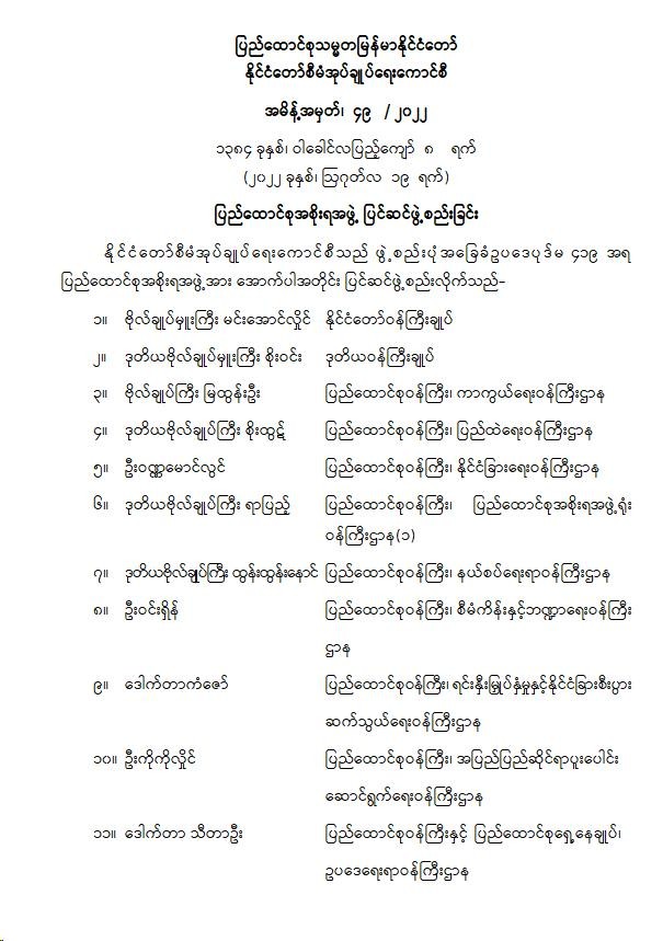 ပုံနှိပ်ခြင်းနှင့်ထုတ်ဝေခြင်းလုပ်ငန်းဥပဒေနှင့်အညီ စာအုပ်စာစောင်များ ပေးအပ်ရန် အသိပေးကြေညာချက်