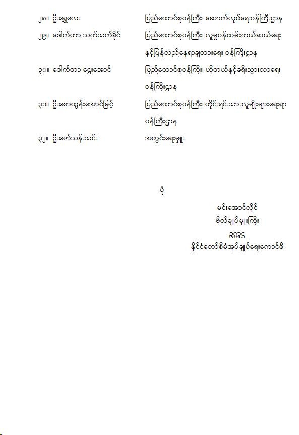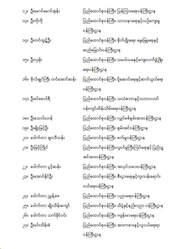 ဝန်ကြီးဌာန ကြေညာချက်များ