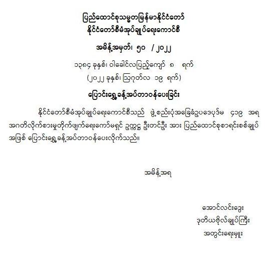 ဝန်ကြီးဌာန ကြေညာချက်များ