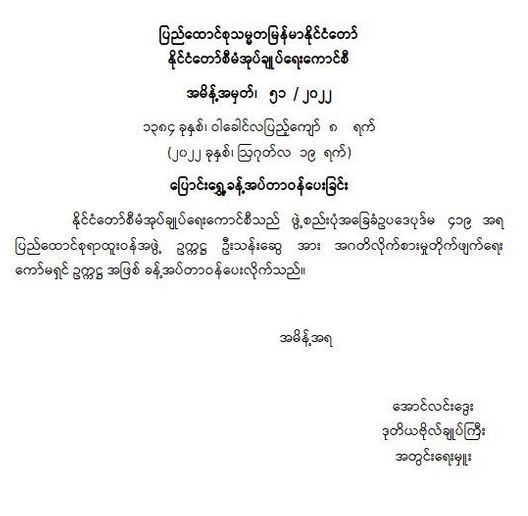 ဝန်ကြီးဌာန ကြေညာချက်များ