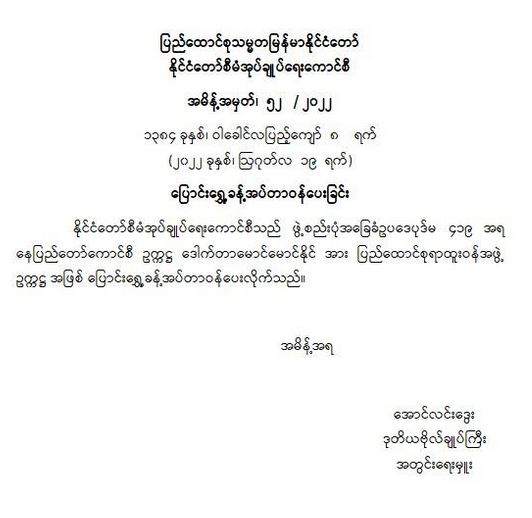 ဝန်ကြီးဌာန ကြေညာချက်များ