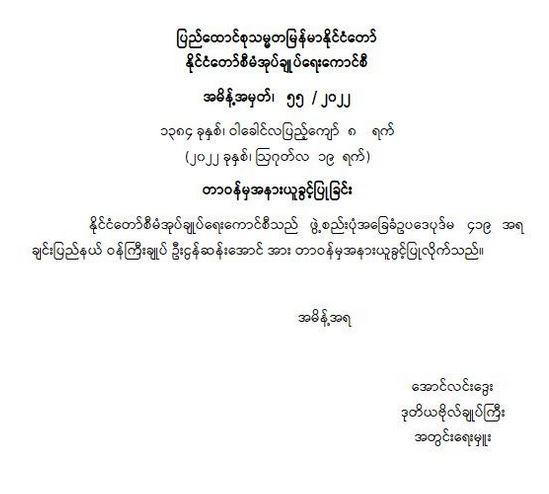 ဝန်ကြီးဌာန ကြေညာချက်များ