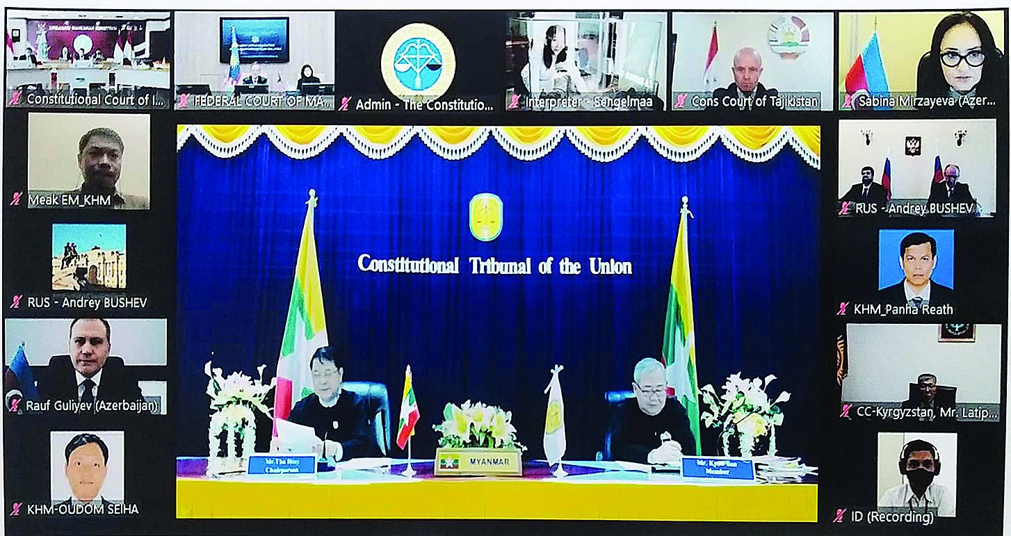 နိုင်ငံတော်ဖွဲ့စည်းပုံအခြေခံဥပဒေဆိုင်ရာခုံရုံးဥက္ကဋ္ဌ ဦးသာဌေးနှင့် ခုံရုံးအဖွဲ့ဝင် ဦးကျော်ဆန်းတို့သည် ဩဂုတ် ၁၈ ရက်မှ ၁၉ ရက်အထိ ကျင်းပသည့် အာရှနိုင်ငံများ၏ ဖွဲ့စည်းပုံအခြေခံဥပဒေဆိုင်ရာ တရားရုံးများနှင့် အဆင့်တူအဖွဲ့အစည်းများအသင်း (AACC- The Association of Asian Constitutional Courts and Equivalent Institutions) ၏ (၅)ကြိမ်မြောက်ညီလာခံနှင့် ဘုတ်အဖွဲ့ဝင်နိုင်ငံများအစည်းအဝေးသို့ အွန်လိုင်းမှတစ်ဆင့် တက်ရောက်သည်။