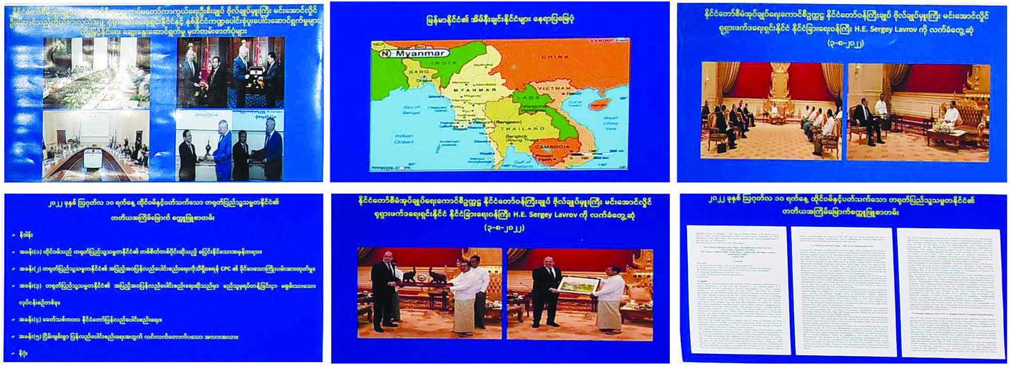 ဆက်လက်ပြီး ရုရှား-မြန်မာဆက်ဆံရေး အကြောင်းကို ဆက်လက်ပြောကြားသွားမည် ဖြစ်ကြောင်း၊ ရုရှား-မြန်မာ နှစ်နိုင်ငံဆက်ဆံရေးသည် (၇၅)နှစ်တာကာလ ပြည့်မြောက်တော့မည်ဖြစ်ပြီး မိတ်ဆွေရင်းညီအစ်ကို နိုင်ငံများဖြစ်သည့်အတွက် သံတမန်ဆက်ဆံမှုများတွင်လည်း ပိုမိုတိုးမြှင့်ရန် ဆောင်ရွက်လျက်ရှိကြောင်း၊ ဩဂုတ်လဆန်းပိုင်းတွင် ရုရှားဖက်ဒရေးရှင်းနိုင်ငံ နိုင်ငံခြားရေးဝန်ကြီး H.E.Sergey Lavrovသည် မြန်မာနိုင်ငံသို့ အလုပ်သဘော ခရီးစဉ်ရောက်ရှိခဲ့ကြောင်း၊ နိုင်ငံတော်စီမံ အုပ်ချုပ်ရေးကောင်စီဥက္ကဋ္ဌ နိုင်ငံတော်ဝန်ကြီးချုပ် နှင့် တွေ့ဆုံခဲ့ကြောင်း၊ အဆိုပါတွေ့ဆုံမှုတွင် ရုရှား-မြန်မာနှစ်နိုင်ငံ မိတ်ဆွေရင်းညီအစ်ကိုနိုင်ငံများ ဖြစ်သည့်အတွက် သံတမန်ဆက်ဆံမှု ပိုမိုတိုးမြှင့်ဆောင်ရွက်နိုင်ရေးအတွက် ရုရှားနိုင်ငံ၌ မြန်မာနိုင်ငံ ဆိုင်ရာကောင်စစ်ဝန်ရုံးနှစ်ခုအား ထပ်မံဖွင့်လှစ် သွားမည်ဖြစ်ကြောင်း၊ မြန်မာနိုင်ငံတွင်လည်း ရုရှားကောင်စစ်ဝန်ရုံးများ ထပ်မံဖွင့်လှစ်နိုင်ရေး ကြိုးပမ်း ဆောင်ရွက်သွားမည်ဖြစ်ကြောင်း၊ အမြဲတမ်း မိတ်ဆွေနိုင်ငံ၊ အမြဲတမ်းမဟာမိတ်နိုင်ငံများအဖြစ် ပူးပေါင်းဆောင်ရွက်သွားမည့် အခြေအနေများ ဆွေးနွေးခဲ့ကြောင်း၊ ရုရှားနိုင်ငံနှင့် မြန်မာနိုင်ငံတို့သည် အချုပ်အခြာအာဏာပိုင်နိုင်ငံများ ဖြစ်သည့်အတွက် မိမိတို့နိုင်ငံ၏ ပြည်တွင်းရေးကို ပြည်ပစွက်ဖက်မှုများမပါဘဲ မိမိတို့အစိုးရများက စီမံဆောင်ရွက်နိုင်သည့်အခြေအနေများ၊ ကာကွယ်ရေးဆိုင်ရာ ပူးပေါင်းဆောင်ရွက်မှုများ ပိုမိုမြှင့်တင်ပေးရေး၊ ကုန်သွယ်မှုနှင့် စီးပွားရေးဆိုင်ရာ ပူးပေါင်းဆောင်ရွက်မှုများတိုးမြှင့်ရေး၊ ခရီးသွားလုပ်ငန်းများ တိုးမြှင့်ရေး၊ ဘာသာရေးနှင့် ယဉ်ကျေးမှုဆိုင်ရာ ပူးပေါင်းဆောင်ရွက်ရေး၊ အရပ်ဘက်၊ စစ်ဘက် ပညာတော်သင်များ ထပ်မံစေလွှတ်ရေးနှင့် လူသားအရင်းအမြစ် ဖွံ့ဖြိုးတိုးတက်ရေးအတွက် အပြန် အလှန် စေလွှတ်သွားမည့်အခြေအနေများ၊ လူသားချင်း စာနာထောက်ထားမှုဆိုင်ရာ ကိစ္စရပ်များတွင် ပူးပေါင်းဆောင်ရွက်ရေး၊ နိုင်ငံတကာနှင့် ဒေသတွင်း ဆက်ဆံရေးအခြေအနေများ၊ မြန်မာနိုင်ငံ၏ နိုင်ငံရေးဖြစ်ပေါ် ပြောင်းလဲမှုအခြေအနေများ၊ မြန်မာနိုင်ငံအတွင်း ပြည်တွင်းငြိမ်းချမ်းရေးရရှိအောင် ဆောင်ရွက်မှုအခြေအနေများကို ဆွေးနွေးခဲ့ကြောင်း၊ နိုင်ငံတော်တွင် နိုင်ငံရေးအရ တည်ငြိမ်အေးချမ်းမှု၊ လုံခြုံရေးအရ တည်ငြိမ်အေးချမ်းမှုများ ရရှိချိန်တွင် ရှေ့လုပ်ငန်းစဉ်နှင့်အညီ ရွေးကောက်ပွဲ ပြန်လည်ကျင်းပဆောင်ရွက်ပေးသွားမည့် အခြေအနေများနှင့် ဒီမိုကရေစီနှင့် ဖက်ဒရယ်စနစ်ကို အခြေခံသည့် ပြည်ထောင်စုတည်ဆောက်ရေးဆိုင်ရာ ကိစ