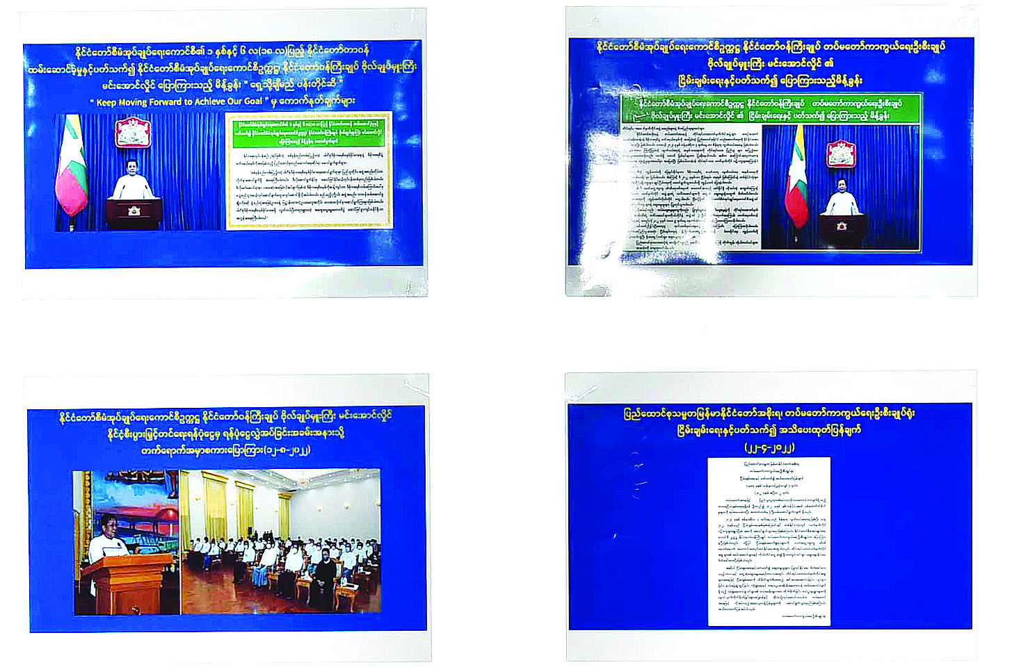 ဆက်လက်ပြီး နောက်ဆုံးအချက်ဖြစ်သည့် အကြမ်းဖက် NUG နှင့် PDF အဖွဲ့အစည်းများ၏ ဒေသအချို့တွင် ဖြစ်ပွားနေသည့် လုပ်ဆောင်မှုများကို ပြောလိုကြောင်း၊ ပထမဦးဆုံး ရန်ကုန်တိုင်း ပြည်သူ့တပ်မဟာအဖွဲ့ဆိုသည့် ထုတ်ပြန်ချက်ကို ပြောကြားလိုကြောင်း၊ NUG အဖွဲ့ကစစ်ရေးအရ ကူညီပံ့ပိုးပေးမည်၊ဩဂုတ်၇ရက်မှစ၍လှိုင်း သုံးလှိုင်းနှင့်လုပ်မည် စသဖြင့် ပြောကြကြောင်း၊ တရားဥပဒေစိုးမိုးရေးကို တစ်ဖက်တစ်လမ်းက တာဝန်ထမ်းဆောင်နေသည့် တရားရုံးမှ ဝန်ထမ်းများနှင့် အခြားဝန်ထမ်းများကို ပစ်မှတ်ထားခြင်းဖြစ်ကြောင်း၊ ခေတ်စကားနှင့်ပြောရလျှင် “ဘာဖြစ်ချင်နေတာလဲ” ဟု မေးရမည်ဖြစ်ကြောင်း၊ လက်နက် မကိုင်ထားသည့် အရပ်သားပစ်မှတ်များကို ဒလန်ဟုစွပ်စွဲပြီး သတ်၊ သတင်းပေးဟုစွပ်စွဲပြီး သတ်၊ ၎င်းတို့ကို မထောက်ခံလည်းသတ်၊ ကြားနေလည်းသတ်၊ ဝန်ထမ်းလည်းသတ်၊ ကိုးကွယ်ရာ ရဟန်း၊ သံဃာပါမချန် သတ်နေသည်မှာတော်လှန်ရေး ဆိုသည်လားဟု မေးလိုကြောင်း၊ ယခုလည်း သတိထားမိအောင် ပြောလိုကြောင်း၊ ဘာလုပ်မည်၊ ညာလုပ်မည်၊ မနက်ဖြန်ချမည်၊ သန်ဘက်ခါလုပ်မည်ဟု လွှင့်ပါကြောင်း၊ လွှင့်ပြီးပါက နောက်ကကပ်ပါ လာသည်မှာ အလှူခံခြင်းဖြစ်ကြောင်း၊ အလှူခံ၍ ငွေရသွားပါက လုံခြုံရေးတပ်ဖွဲ့ဝင်များက ဖမ်းခြင်းခံလိုက်ရသည်ဟုဆိုကာ မြို့ပြကိုစွန့်ခွာသွားပြီဖြစ်ကြောင်းကို ဝမ်းနည်းစွာ အသိပေးပါသည်ဆိုသည်ဟု ပြောလာသည်ကို တွေ့ရမည်ဖြစ်ကြောင်း၊ ဆိုလိုသည်မှာ နာမည်ကြီး အစီအစဉ်တစ်ခုထဲက ကဲ့သို့‘‘မီးလေးခဏမှိတ်ထားပါပြန်လာပါမယ်”၊ ယခုလည်း မီးလေးခဏမှိတ်ထားပါ၊ နောက်ထပ်ခေါင်းစဉ်တစ်ခုဖြင့် ဖလားအသစ်တစ်လုံးကိုင်ပြီး ပြန်လာပါမည်ဆိုသည့် သဘောသာဖြစ်ကြောင်း။