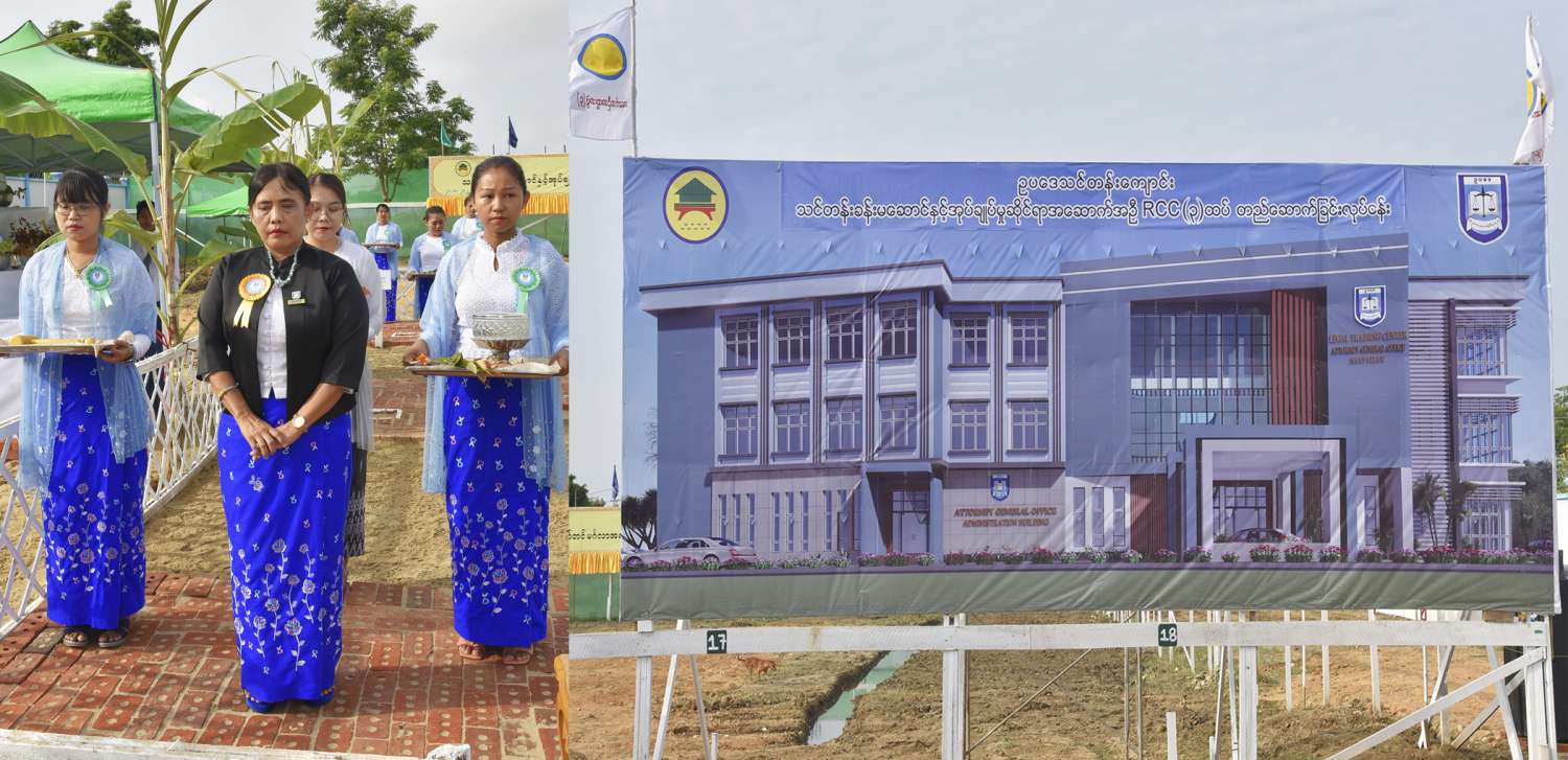 ဥပဒေအသိပညာပြန့်ပွားရေးဌာန Legal Advocacy Center သင်တန်းခန်းမဆောင်နှင့် အုပ်ချုပ်မှုဆိုင်ရာ အဆောက်အဦ RCC (၃)ထပ်ဆောင် ရတနာ ပန္နက်တော်တင်မင်္ဂလာ အခမ်းအနားကို ယနေ့နံနက်(၈)နာရီတွင် နေပြည်တော် ဥတ္တရသီရိမြို့နယ် ဇဝန သိဒ္ဓိရပ်ကွက်ရှိ အဆိုပါအဆောက်အဦ ဆောက်လုပ်မည့်မြေနေရာ၌ ကျင်းပသည်။