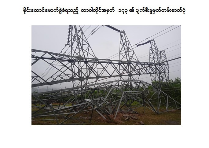 ဖြစ်စဉ်မှာ မော်လမြိုင်-မြဝတီဓာတ်အားလိုင်း ၂၃၀ ကေဗွီတာဝါတိုင်အမှတ်၊ ၁၇၂ နှင့် တာဝါတိုင် အမှတ်၊ ၁၇၃ တို့အား KKO (ခွဲထွက်)အဖွဲ့နှင့် PDF အမည်ခံ အကြမ်းဖက်သမားများသည် ဩဂုတ် ၂၀ ရက် ည ၁၁ နာရီခန့်တွင် မိုင်းထောင် ဖောက်ခွဲ ဖျက်ဆီးခဲ့ကြောင်း၊ ထိုသို့ မိုင်းထောင်ဖောက်ခွဲဖျက်ဆီးခဲ့မှုကြောင့် တာဝါတိုင်အမှတ်၊ ၁၇၂ တွင် အောက်ခြေတိုင် ၁ တိုင်ပျက်စီးခဲ့ပြီး တာဝါတိုင်အမှတ်၊ ၁၇၃ သည် မြေပြင်တွင် လဲကျပျက်စီးခဲ့ကာ ကရင်ပြည်နယ်၊ ကျုံဒိုးမြို့၊ ကော့ကရိတ်မြို့၊ မြဝတီမြို့နှင့် ကြာအင်းဆိပ်ကြီးမြို့များတွင် ဓာတ်အားပြတ်တောက်လျက်ရှိကြောင်း သိရှိရသည်။