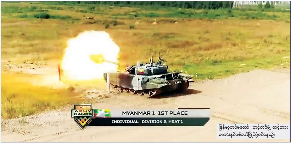 ရုရှားဖက်ဒရေးရှင်းနိုင်ငံတွင် ဩဂုတ် ၁၅ ရက်မှစတင်၍ ကျင်းပပြုလုပ်လျက်ရှိသည့် International Army Games-2022 ပြိုင်ပွဲတွင် ပါဝင်သောတင့်ကား မောင်းနှင်ပစ်ခတ်ခြင်းပြိုင်ပွဲ Tank Biathlon (Tank Crews Competition) Division-2 သို့ မြန်မာ့တပ်မတော်တင့်တပ်ဖွဲ့ ဝင်ရောက်ယှဉ်ပြိုင်ခဲ့ပြီး ပထမဆုကို ထိုက်တန်စွာ ရယူနိုင်ခဲ့သည်။