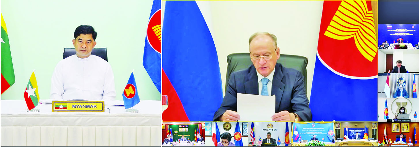ဒုတိယအကြိမ် အာဆီယံ-ရုရှား လုံခြုံရေးဆိုင်ရာ အဆင့်မြင့်ကိုယ်စားလှယ်များ ရုပ်သံဆွေးနွေးပွဲ (2nd ASEAN – Russia Consultations of the High Representatives for Security Issues) ကို ယနေ့မွန်းလွဲပိုင်း က Video Conferencing စနစ်ဖြင့် ကျင်းပရာ ရုရှားနိုင်ငံနှင့် အာဆီယံအဖွဲ့ဝင်နိုင်ငံများမှ အဆင့်မြင့်အရာရှိကြီးများ တက်ရောက်ဆွေးနွေးခဲ့ကြပြီး အဆိုပါဆွေးနွေးပွဲသို့ မြန်မာနိုင်ငံ ကိုယ်စားလှယ်အဖြစ် ပြည်ထောင်စုအစိုးရ အဖွဲ့ရုံးဝန်ကြီးဌာန(၁) ဒုတိယအမြဲတမ်းအတွင်းဝန် ဦးထက်အောင် တက်ရောက်သည်။