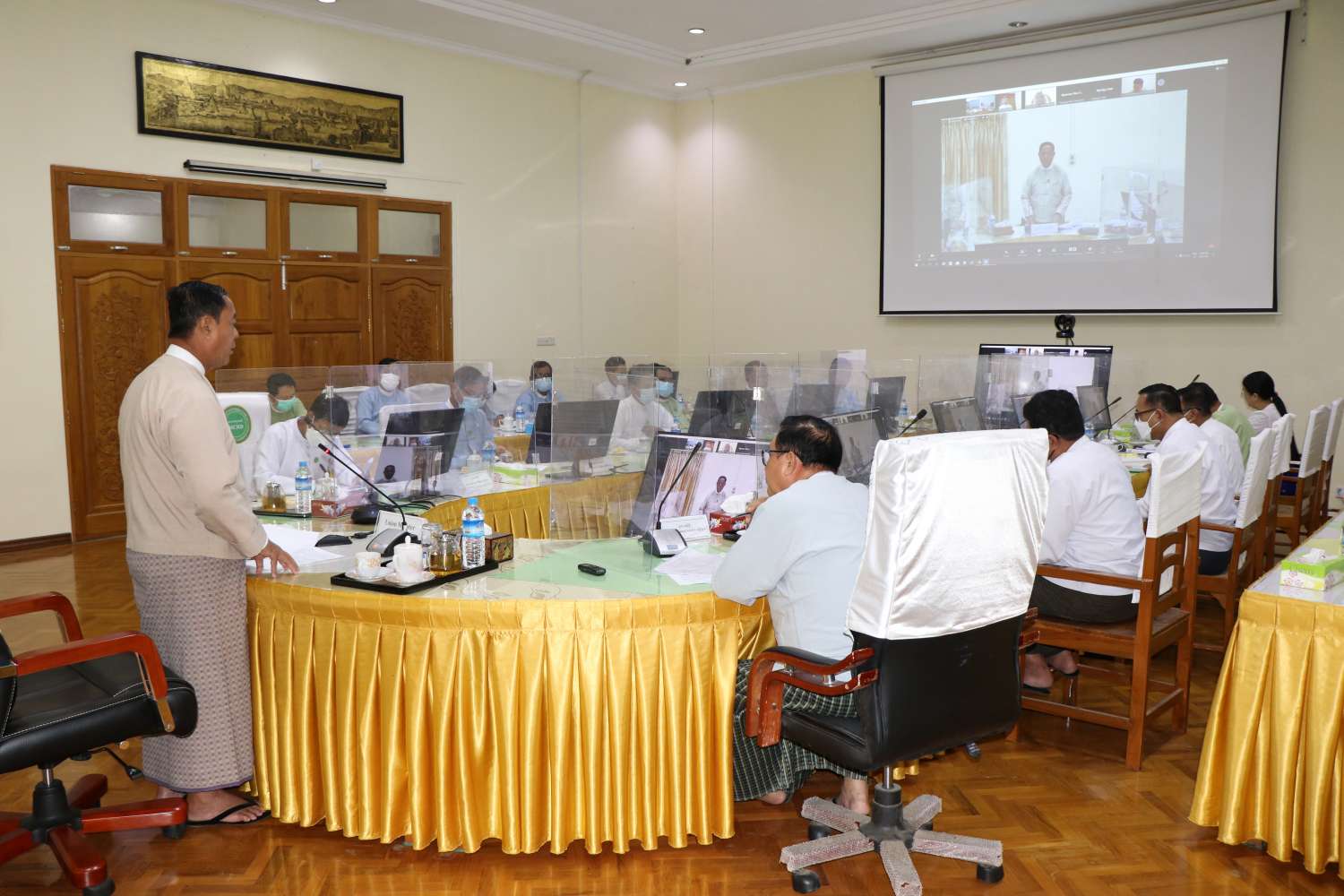 ယူရီးယားမြေဩဇာ ဝယ်ယူဖြန့်ဖြူးရောင်းချရေးဦးဆောင်ကော်မတီ ညှိနှိုင်းအစည်းအဝေးကို ယနေ့နံနက်ပိုင်းက ရုံးအမှတ် (၁၆) သမဝါယမနှင့် ကျေးလက်ဖွံ့ဖြိုးရေးဝန်ကြီးဌာန၊ အစည်းအဝေးခန်းမ၌ Online စနစ်ဖြင့် ကျင်းပသည်။
