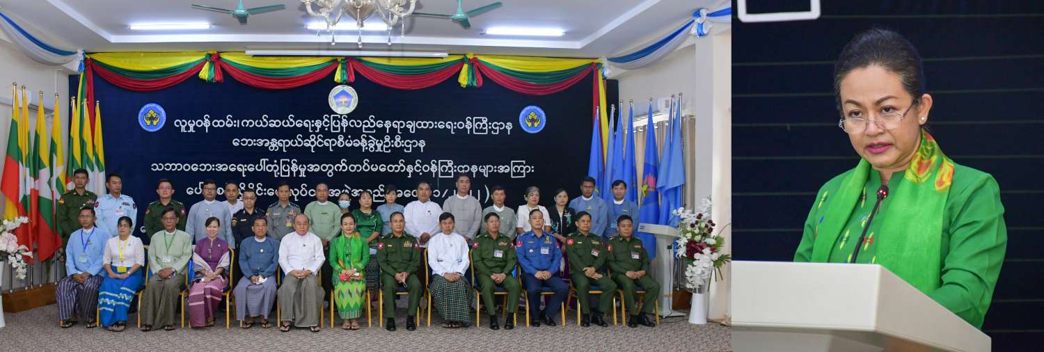 သဘာဝဘေးအန္တရာယ် ကျရောက်သည့်အခါ လျင်မြန်သော တုံ့ပြန်ဆောင်ရွက်မှုနှင့် အရေးပေါ်ကာလ ဆက်သွယ်ဆောင်ရွက်နိုင်ရေး လုပ်ငန်းစဉ်များကို အဖွဲ့အစည်းအားလုံးက ပူးပေါင်းဆောင်ရွက်ကြရာတွင် အရပ်ဘက်-စစ်ဘက် ပူးပေါင်းဆောင်ရွက်မှုမှာလည်း အထူးအရေးပါကြောင်း၊ အရပ်ဘက်-စစ်ဘက် ပူးပေါင်းဆောင်ရွက်မှု ပိုမိုအားကောင်းပြီး ထိရောက်သော လူသားချင်းစာနာမှု အကူအညီပေးရန်နှင့် အရေးပေါ်တုံ့ပြန်မှုလုပ်ငန်းများ ပိုမိုအားကောင်းလာစေရန် ရည်ရွယ်ချက်ဖြင့် လူမှုဝန်ထမ်း၊ ကယ်ဆယ်ရေးနှင့် ပြန်လည် နေရာချထားရေးဝန်ကြီးဌာနက ဦးဆောင်ကာ အမျိုးသားသဘာဝဘေးအန္တရာယ်ဆိုင်ရာ စီမံခန့်ခွဲမှုလုပ်ငန်းကော်မတီ အသီးသီးမှ ကိုယ်စားလှယ်များ၊ ကာကွယ်ရေးဝန်ကြီးဌာနမှ ကိုယ်စားလှယ်များ၊ မြန်မာနိုင်ငံ ကြက်ခြေနီအသင်းမှ ကိုယ်စားလှယ်များဖြင့် ယခင်က ဆောင်ရွက်ခဲ့သည့် “Civil Military Coordination Workshop on Disaster Management” အလုပ်ရုံဆွေးနွေးပွဲများမှ အကြံပြုချက်များအပေါ် လမ်းညွှန်မှုခံယူပြီး “သဘာဝဘေးအရေးပေါ် တုံ့ပြန်မှုအတွက် တပ်မတော်နှင့် ဝန်ကြီးဌာနများအကြား ပေါင်းစပ်ညှိနှိုင်းရေးလုပ်ငန်းအဖွဲ့” ကို ၂၀၂၂ ခုနှစ်၊ မတ်(၃)ရက်တွင် ဖွဲ့စည်းခဲ့ခြင်းဖြစ်ကြောင်း၊ လုပ်ငန်းအဖွဲ့အနေဖြင့် ပေးအပ်ထားသည့် တာဝန်များအပေါ်မူတည်ပြီး ရှေ့ဆက်ဆောင်ရွက်မည့် လုပ်ငန်းစဉ်များ စနစ်တကျဖြစ်စေရေး ဆွေးနွေးညှိနှိုင်း ကြရန်ဖြစ်ကြောင်းနှင့် အားလုံးပူးပေါင်းပါဝင်သည့် သဘာဝဘေးတုံ့ပြန်မှုအတွက် သဏ္ဌာန်တူ ဇာတ်တိုက်လေ့ကျင့်ခန်း(Simulation Exercise) ဆောင်ရွက်နိုင်ရေး ဝိုင်းဝန်းပူးပေါင်းဆောင်ရွက်ကြရန် တိုက်တွန်းလိုပါကြောင်း ပြောကြားသည်။